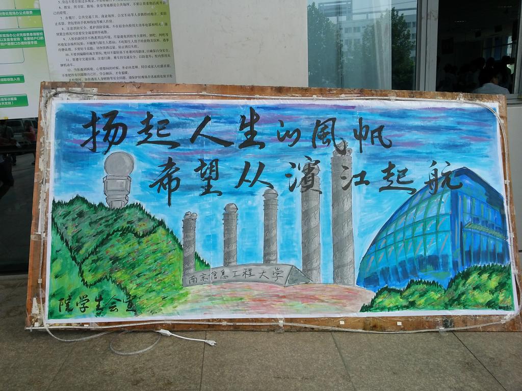 院学生会手绘图激励学弟学妹——扬起人生风帆 希望从滨江起航