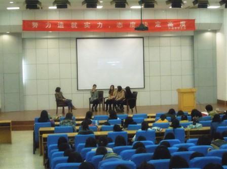 为更好的帮助12级英语相关专业等学生备战即将到来的英语专业四级考试,3月12日下午一点半,外语系在滨江报告厅举办了以“努力造就实力,态度决定高度”为主题的英语专业四级考试经验交流会。