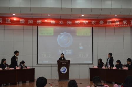 3月16日晚,由理学系学生会和滨江辩协联手打造的“儒辩杯”独立学院辩论邀请赛决赛在滨江报告厅开赛。经过激烈的比赛,东南大学成贤学院荣获冠军,南京师范大学中北学院获得亚军,我院及南京大学金陵学院同获季军。