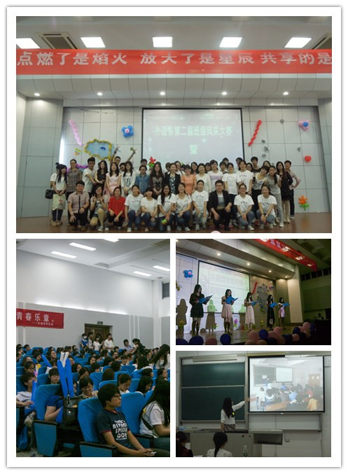 5月22日晚,外语系第二届班级风采大赛决赛暨表彰大会在滨江报告厅圆满落幕。13级商务英语1班夺得综合成绩桂冠以及最佳人气奖,13级商务英语2班包揽综合成绩亚军和最佳才艺奖,13级英语2班获得综合成绩季军,最佳学风建设奖由12级英语2班摘获。