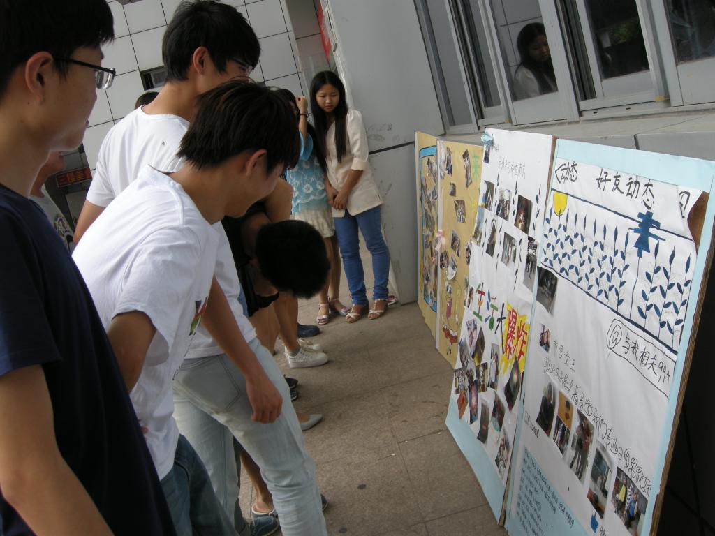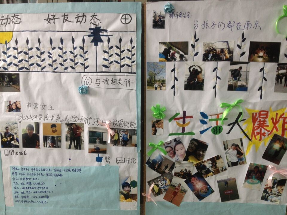 一张张活动照片记录了大家“三七女生节”、春游珍珠泉、经贸篮球赛等集体活动的班级风采,生动地地描述了同学们在校学习、生活的精神状态;一行行诙谐的“画外字”将宿舍照片串成了有爱的故事,更用当下同学们流行的微博体@了身边的新鲜事儿。系列展示个性鲜明、形象生动,吸引了许多同学驻足观看。