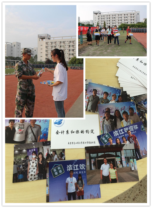 自新生军训开始,会计系新生辅导员每天到军训场地上去看望学生,在新生班级群中给同学们鼓劲打气,希望同学们上好“大学第一课”;系学生会的学长学姐,在军训间歇,征得教官的同意给新生们送去解暑解渴的必备品,带去老师和老生们对他们的关心照顾。师生们还慰问了会计系各军训班级的教官,道一声辛苦,感谢他们的坚持与付出。军训期间正值中秋佳节,新生除了收到了来自学院慰问新生的中秋餐券,还收到一份意外的节日惊喜——会计系“至美一拍”的全家福明信片,很多同学收到明信片后都纷纷给远方的父母拨打了一个平安电话,提前送上了中秋祝福。