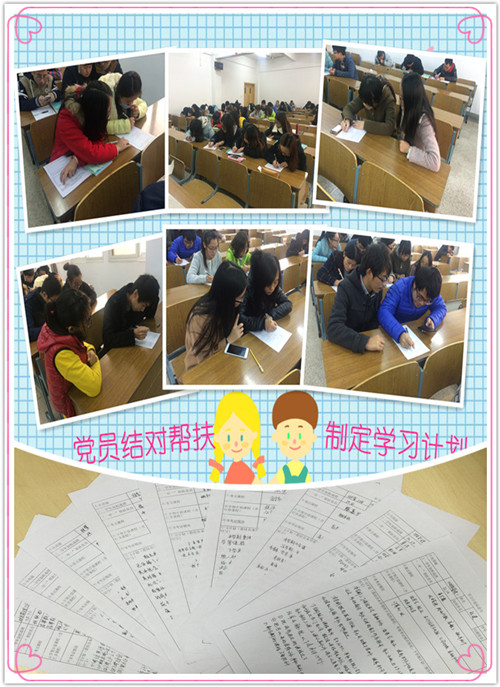 活动分为两部分组成。第一部分为励志感恩篇,由国家励志奖学金获得者给同学们分享了学子风采事迹,两名同学撰写了题为《时间会刺破青春表面的彩饰》、《用微笑筑青春 用勤奋铸辉煌》的感悟文章。郑晓坤老师鼓励同学们要把握好大学时光,励志自强,合理使用好各类资助,并能好好学习争取国家级的奖学金来减轻父母的压力,练就过硬的本领,通过自身努力找到一份好工作,承担起家庭的责任,获得2015年国家励志奖学金和国家助学金的同学认真填写了受助学生资助资金使用计划承诺。第二部分为友爱互助篇,由12名党员与学习困难的同学“一对一”结对帮扶,由党员和学习困难同学一起制定《学习计划承诺书》,结合本学期所开设的课程、考级考证情况和下学期计划三部分内容,合理制定好学习计划,党员在期末复习阶段带领学习困难同学一起上自习,做好帮扶记录。党员还建立了“帮扶小分队”的QQ群,同学们在里面一起讨论、一起学习,争取不让任何一个同学掉队。经过帮扶活动树立了学习困难同学的信心,郑重地将承诺书交给辅导员老师,承诺要认真执行学习计划承诺,争取完成学习任务,不给帮扶党员丢脸,为自己、为父母争光。