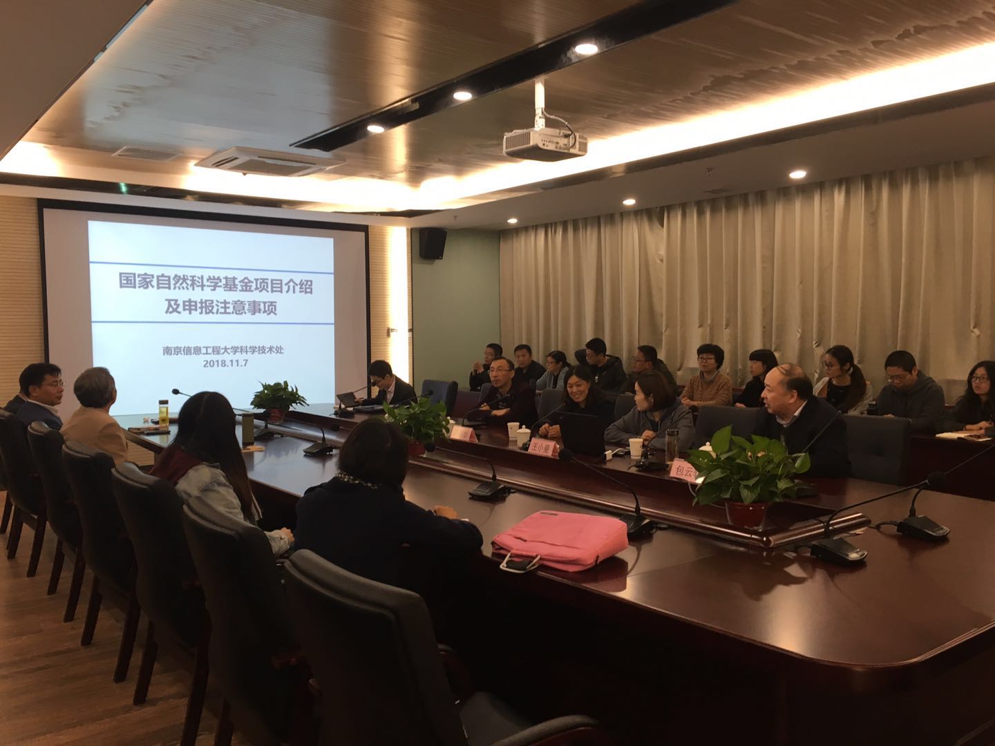 为增强我院教师对国家自然科学基金、江苏省自然科学基金申请流程的了解,推动我院国家级、省部级科研项目的申报,11月7日下午,我院邀请南京信息工程大学科学技术处王小曼、马奋华两位主任来我院作国家自然科学基金、江苏省自然科学基金申请方面的培训。培训会议由包云轩副院长主持,滨江学院全体博士及副高以上职称老师、各二级学院科研秘书参加此了次培训活动。