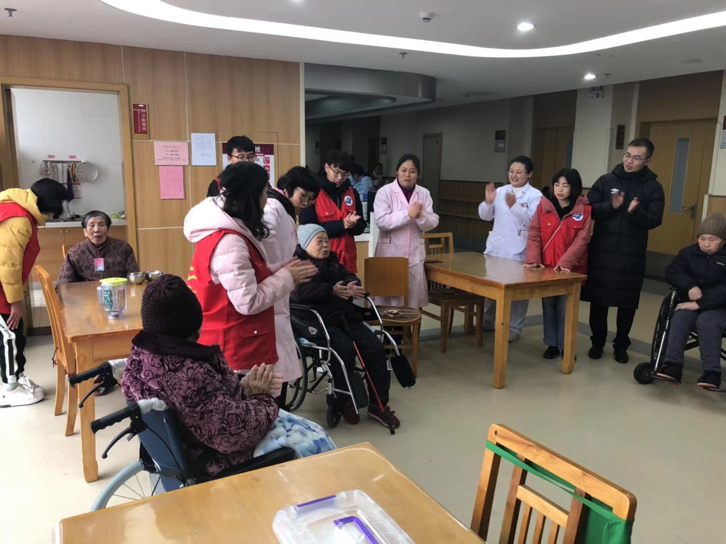 下午2点,学生们在辅导员老师的带领下,迎着寒风和细雨来到了安镇街道养老服务中心,看望在院老人,为他们送上了冬日暖被。在养老院院长的安排下,学生们分为4个小组,到各个楼层的房间看望老人。在院老人普遍是八、九十岁高龄,多为孤寡老人,有的生活不能自理。学生们握着老人的手嘘寒问暖,聊起了家常,学生们介绍着自己家乡的风光,还和老人一起唱起了红歌,在阵阵歌声和掌声中,老人们笑得合不拢嘴。有的学生看着老人,想起了自己远在家乡的亲人,内心十分感触,表示要励志成才,回报亲人和社会。可爱的脸庞,温暖的问候,欢乐的笑声为养老服务中心的老人带来了热闹与欢乐。