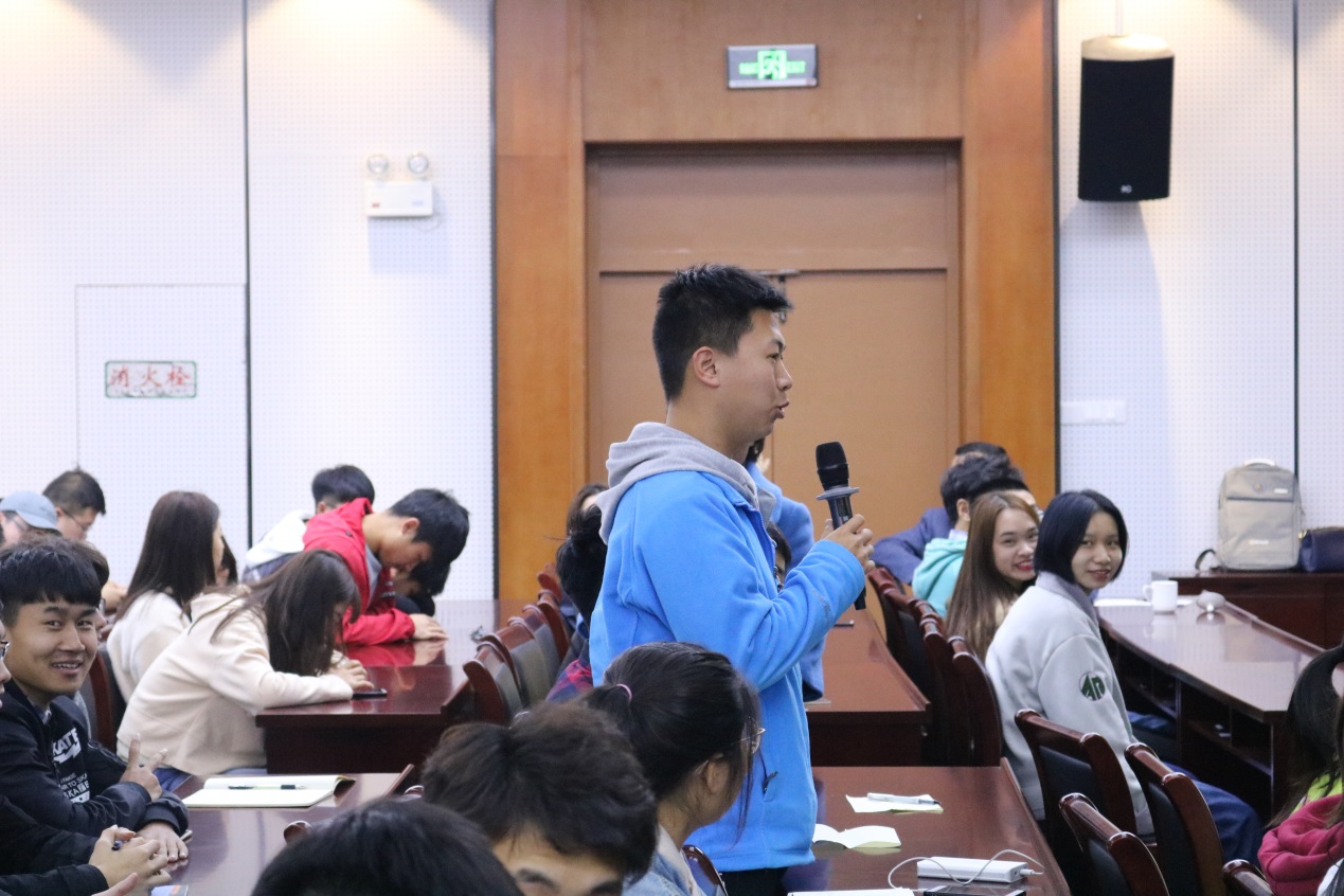 苏向荣教授作了题为《过一种书香生活》的专场报告。他结合自身的学习、工作经历,分享了他读书治学的经验和体会。他介绍了国人对读书的认识变迁,分析了读书的成本收益及如何进行选读,阐释了慢、静、独、越、敬、思、行、痴八种读书境界,并指出读书作为个人的选择行为,对个人生活、社会发展具有重要意义。他从书书无外、花香书香、为书而活、围书而乐四个方面描绘出书香世界的生活状态,将师生引入美好的书香世界。苏向荣教授谆谆教导靑年学子们,要多读书,读好书,要根据自己人生规划有选择地读有用的书。