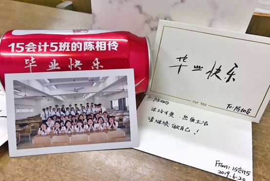 2015级文科各毕业班级举办了各有特色的最后一次班会。“梦回2015、起航2019”15人资专业同学在班会中回顾大学四年生活,诉说对同学的不舍和对未来的期待;每人一罐纪念可乐,集体开怀畅饮,这是15会计5班在班会上为同学们私人定制的毕业伴手礼,希望同学们在未来的每一天都开心快乐!不同的班会,共同的情怀,主题都是纪念浓浓同学情,不舍母校恩。毕业后再也没有这样的班会,也许只能相聚于社会“江湖”,在这最后一次的班会中,大家尽情话别,畅叙衷肠。