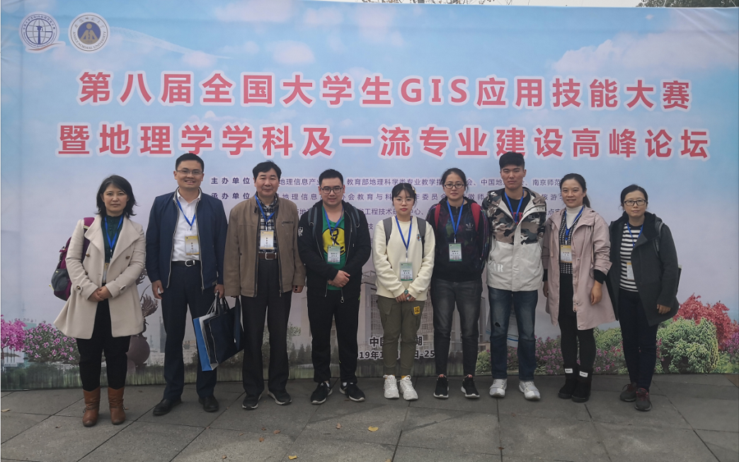 2019年11月23日-25日,第八届全国大学生GIS应用技能大赛在安徽师范大学(芜湖)成功举办。由我院2016级地理信息专业学生蓝孙乐、韩颖、窦佳靓、陈梦琪组成的战队,在史岚、刘爱利、丁园圆、施国萍等老师的精心指导下,经过数月认真备战,一举斩获二等奖。