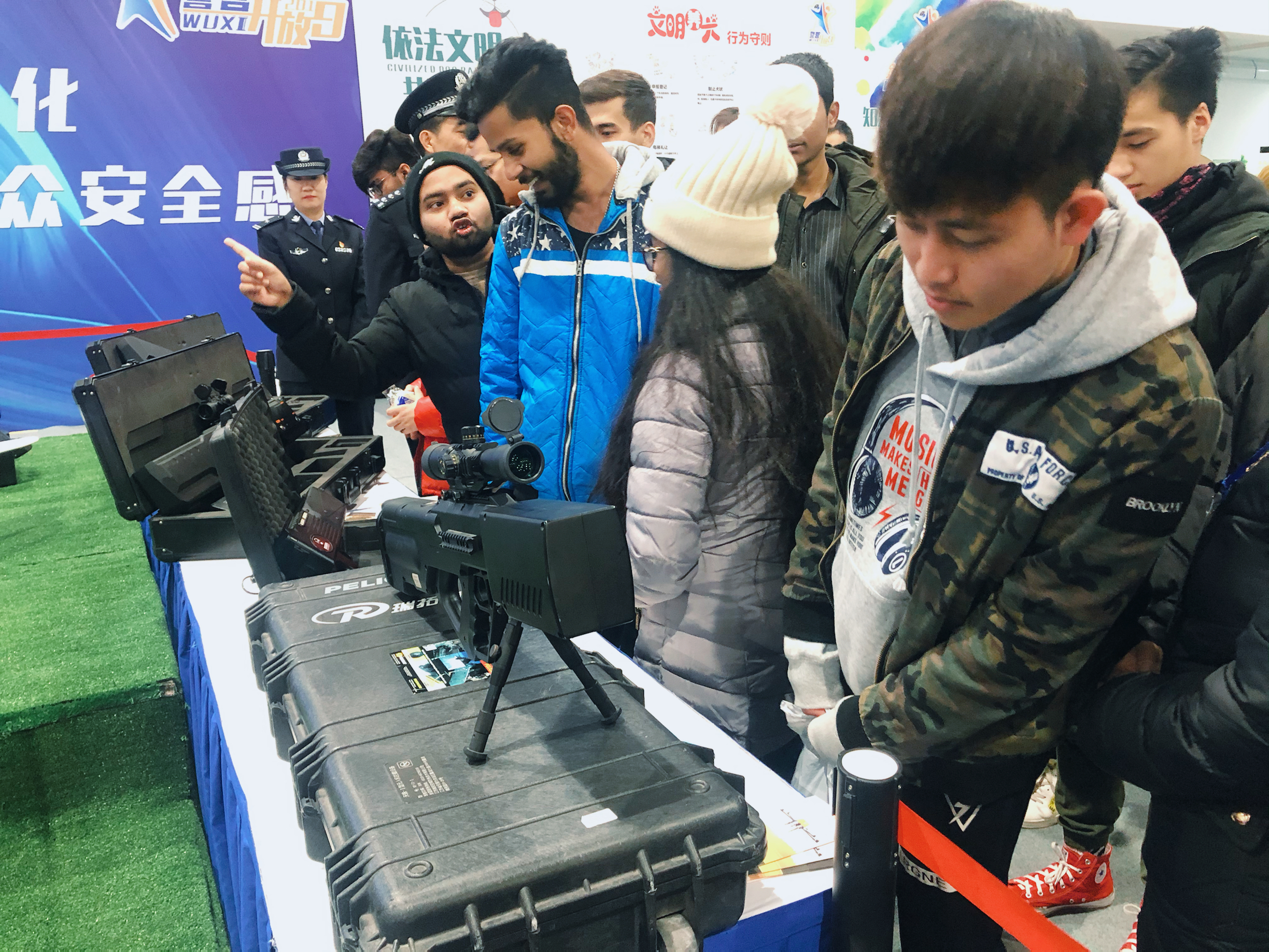 11月30日,我院组织留学生参加无锡市公安局在新体育中心体育馆举办的2019“筑梦警营·警彩绽放”警营开放日活动。