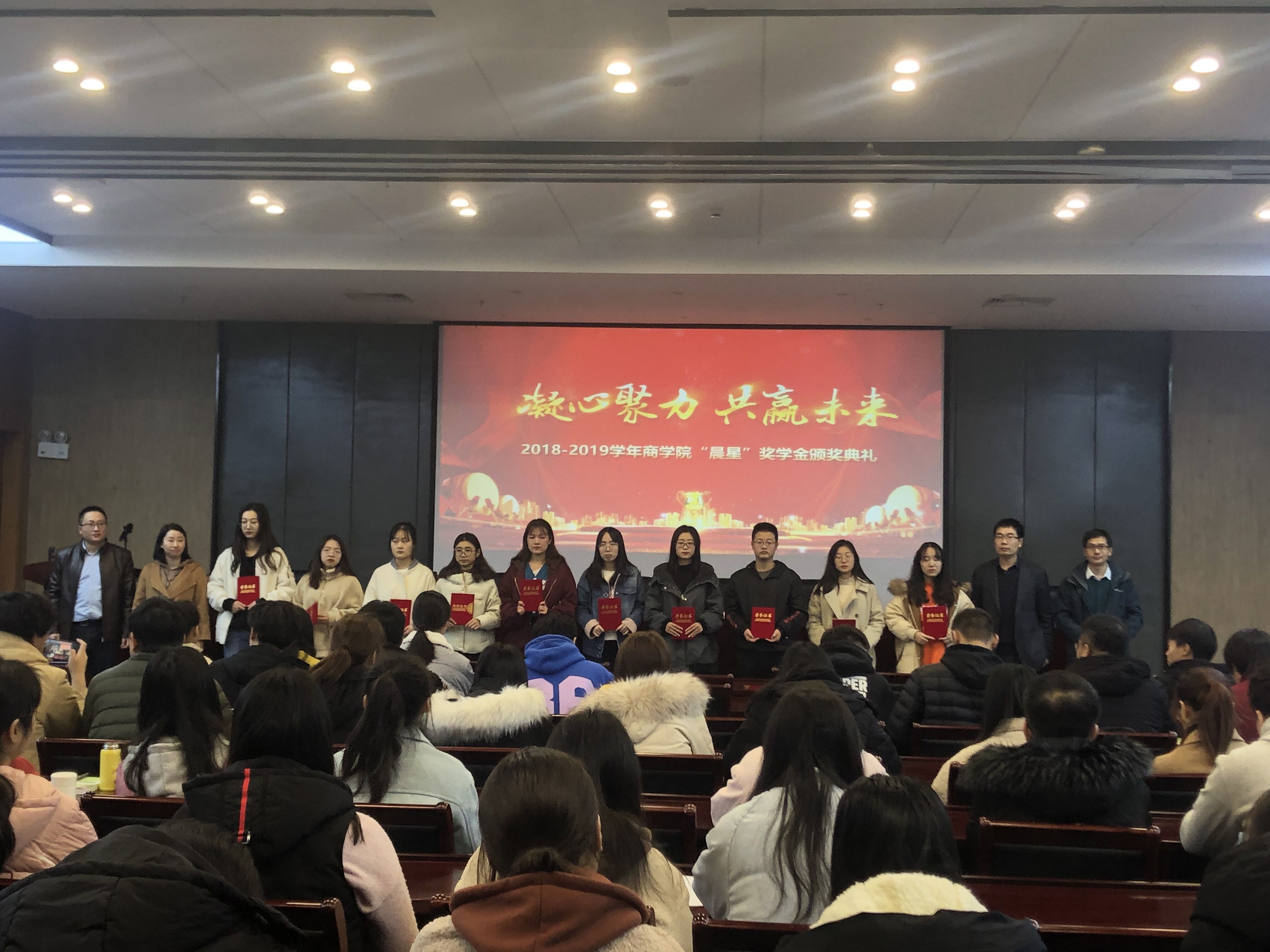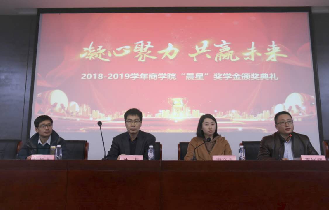 12月13日上午,商学院第一届“晨星”奖学金颁发仪式在滨江大礼堂一楼报告厅103举行。财务处处长、商学院党总支书记孙振,学工处副处长、团委副书记李沛武,商学院院长陈理飞,财鑫教育培训中心江苏区副总裁唐文秀出席颁奖仪式,2018级学生代表参加仪式。仪式由陈理飞院长主持。