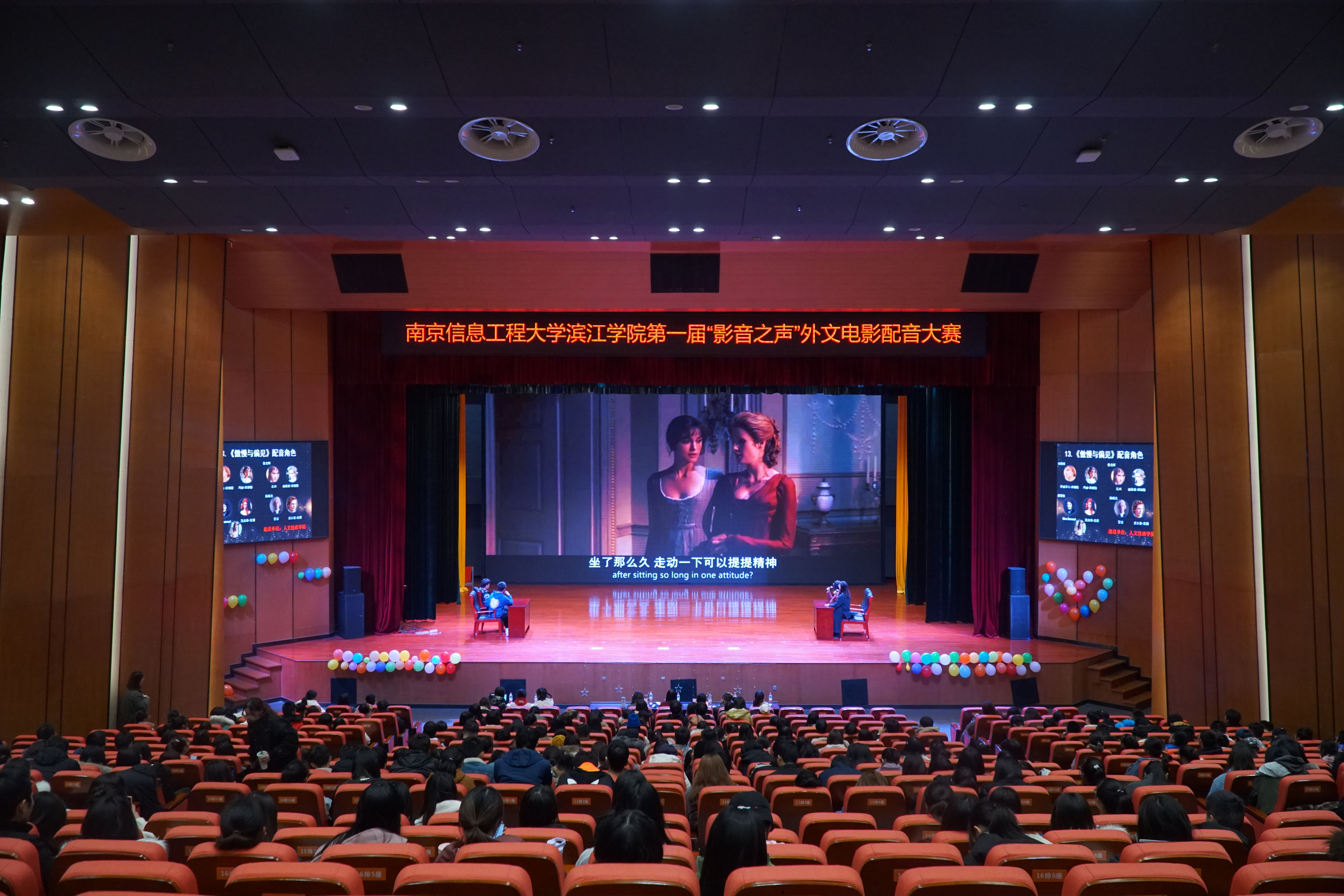为丰富校园文化,激发学生学习外文的热情,提高学生的外语素养和口语水平,培养学生的创新及团队合作能力,12月18日晚,由学工处、团委与人文法政学院联合举办的滨江学院无锡校区第一届“影音之声”外文电影配音大赛决赛在滨江大礼堂二楼剧场隆重举行。此次大赛特别邀请了国际教育学院院长王勇,人文法政学院副院长谭东峰,学工处副处长、团委副书记李沛武,国际教育学院蒋一琦老师和人文法政学院赵岚老师担任评委。