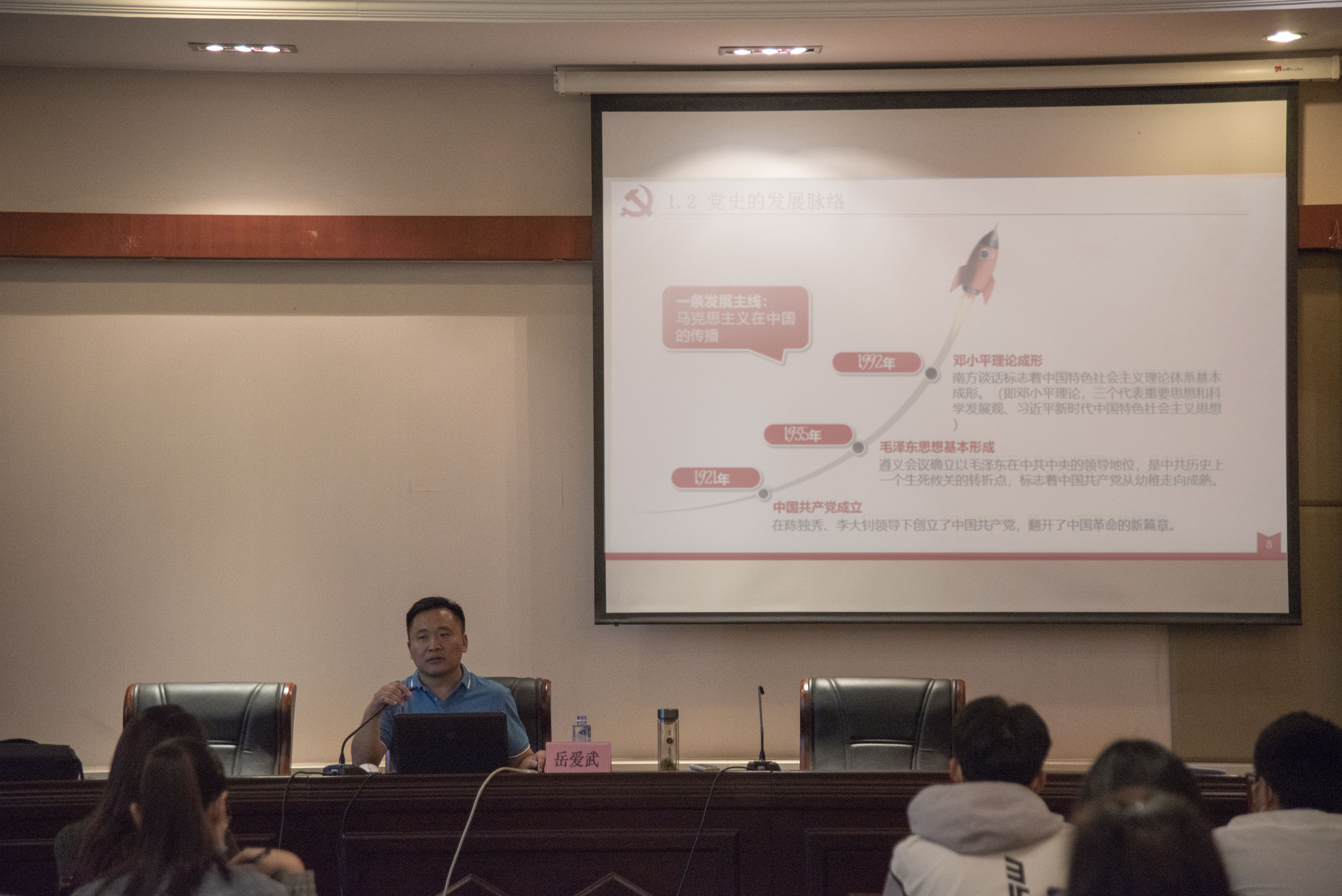 5月30日下午,校马克思主义学院岳爱武教授为学员们作了《中国共产党简史》的报告,岳老师生动讲述了中国共产党从成立到改革开放新时代的光辉历程,以及无数能仁志士浴血奋战,自强不息,为民族独立、人民解放、国家富强抒写了可歌可泣的壮丽史诗。
