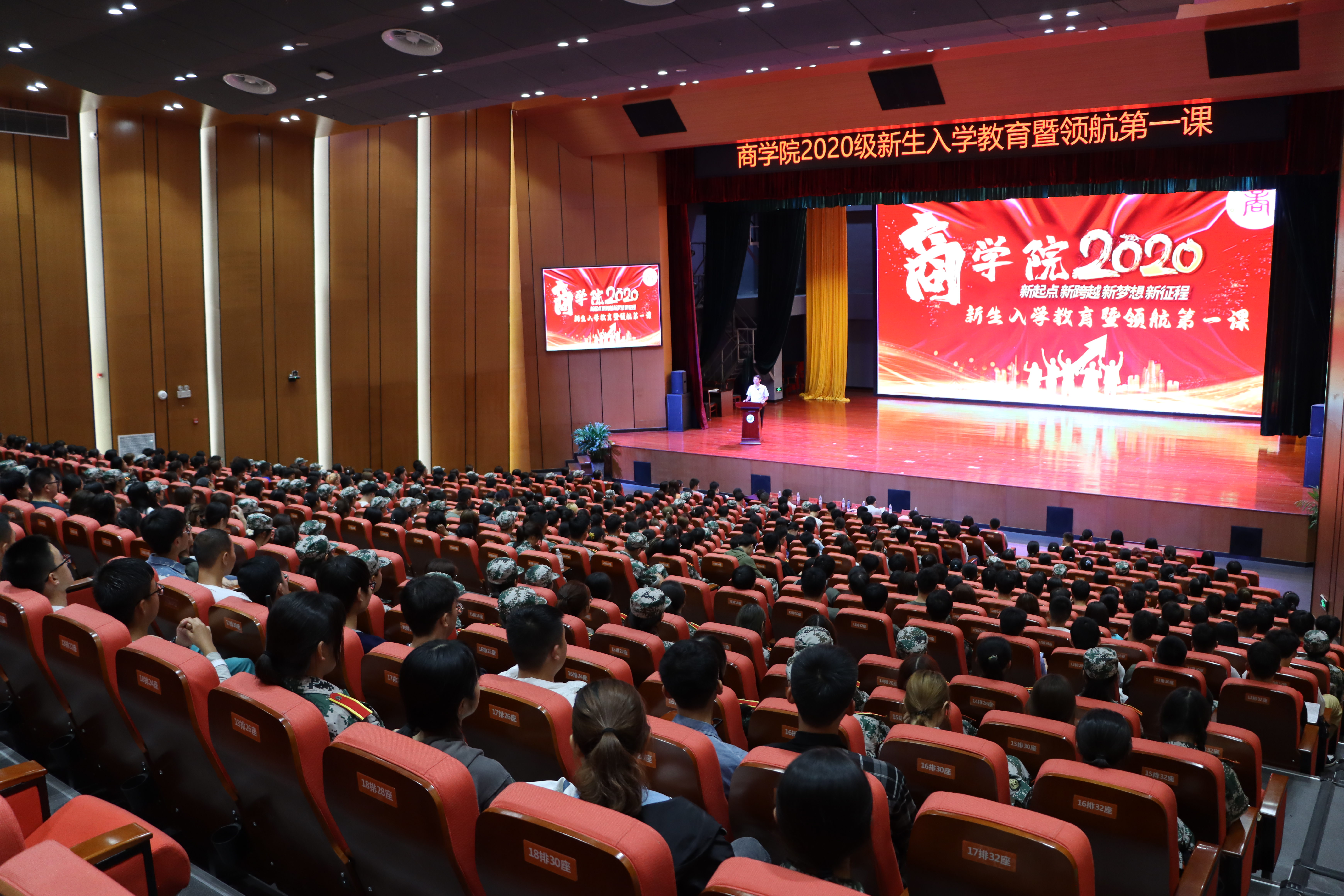 9月23日晚,商学院2020级新生入学教育暨领航第一课在滨江大礼堂二楼顺利举行。滨江学院院长曹广喜,商学院党总支书记孙振,商学院院长陈理飞、分团委书记李诗雅、各系系主任、全体辅导员及新生参加,大会由商学院院长陈理飞主持。