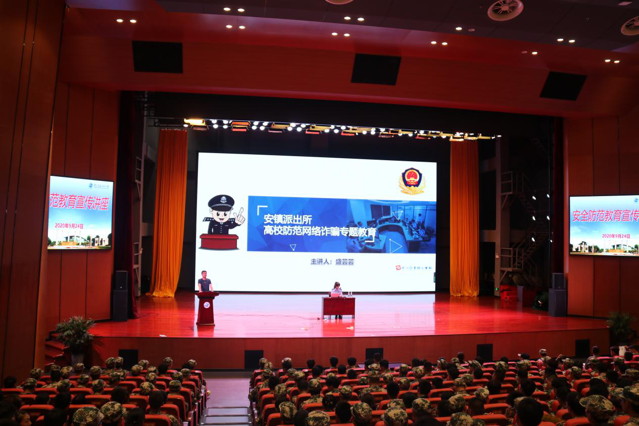 为增强学生的安全防范意识,预防和减少校园犯罪及网络诈骗案件的发生,让同学们牢固树立国防意识,鼓励学生积极参军应征入伍。军训期间,学院举办以“预防网络诈骗”、“校园信息化使用与安全”、“校园安全管理”和“国防教育与征兵工作宣传”为主题的系列讲座,对2020级新生开展安全教育、国防教育和征兵工作宣传。