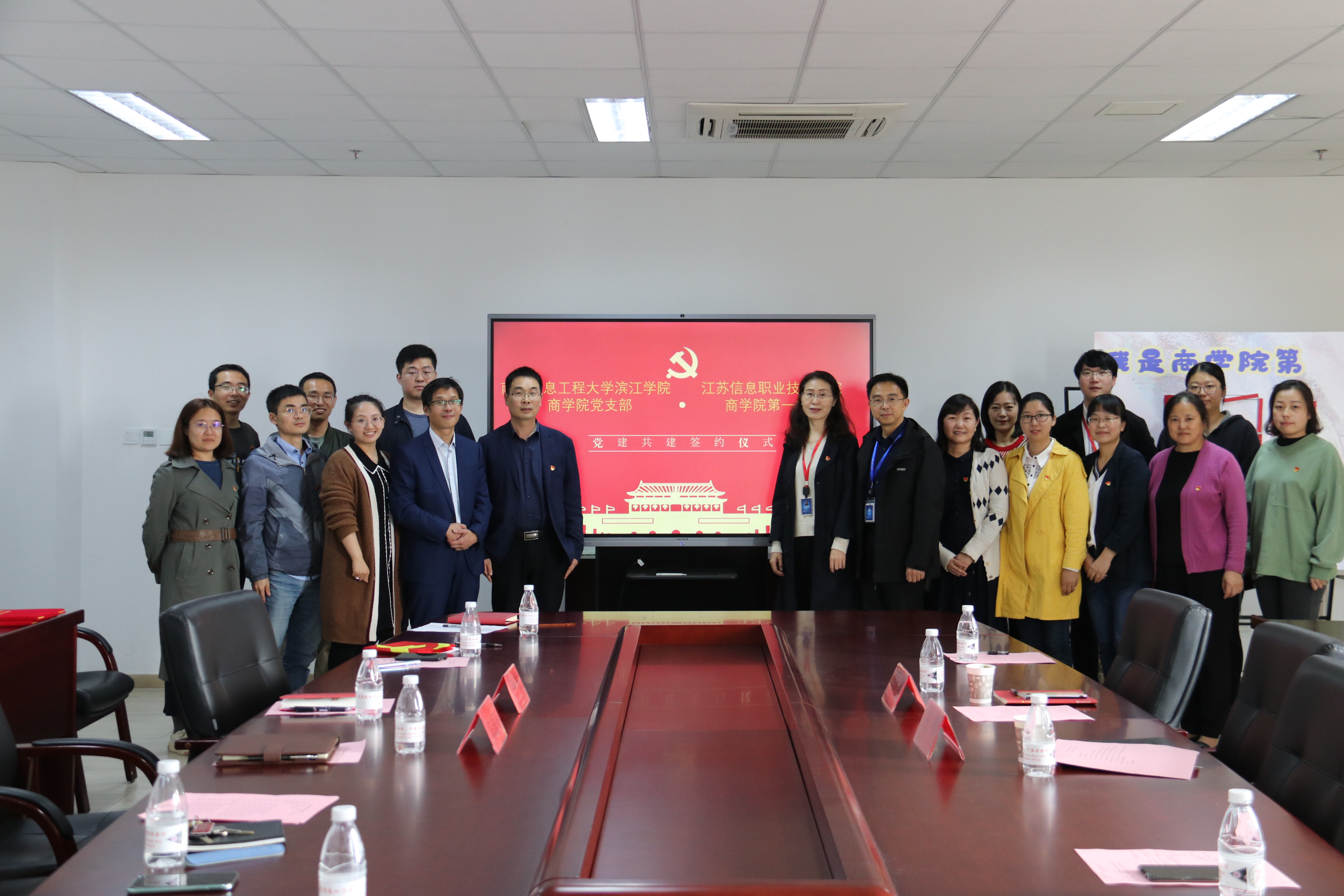 随后,商学院分团委书记李诗雅与江苏信息职业技术学院商学院第一党支部书记毛金芬代表双方党支部签订了支部共建协议。潘栋梁、鄢丽敏老师作为双方教师党员代表表示,期待通过支部合作共建拓宽党员教育培养途径,盘活支部资源,不断推进支部“创先争优”、“提质增效”取得新成效。