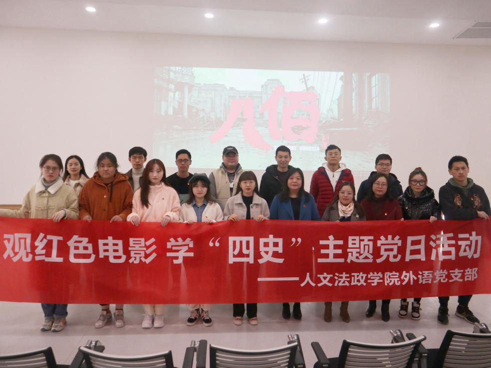 为了弘扬抗战精神、激发爱国情怀、加强革命传统教育、增强党员责任意识。12月9日下午,人文法政学院外语党支部开展了“观看红色电影,增强红色情怀”主题党日活动。人文法政学院党总支书记李磊、人文法政学院副院长谭东峰以及全体师生党员参与了本次党日活动。