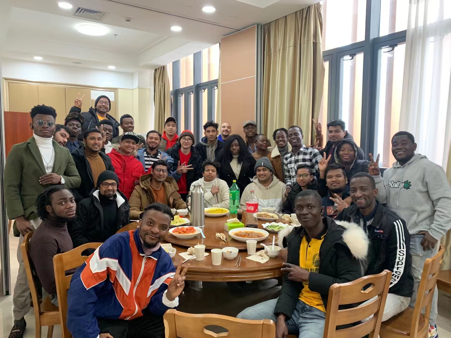 2月11日中午,我院于桃园餐厅三楼为寒假留校的本科生、研究生以及来自乌兹别克斯坦、孟加拉国、巴基斯坦等14个国家的留学生举办年夜饭活动。副院长杨再强,国际教育学院院长王勇,学工处副处长林峰,保卫处保卫科科长赵树轩,国际教育学院辅导员老师蒋一琦、胡苏阳以及全体中外留校学生欢聚一堂,共度春节。