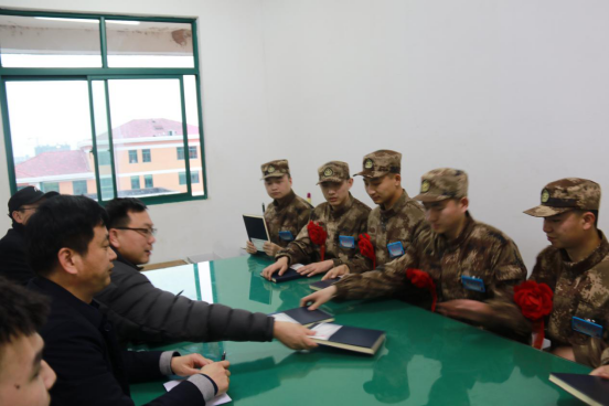 3月12日,我院武装部、学生工作处领导赶赴无锡市姚湾某训练基地,慰问正在参加役前训练的我院2021年春季应征入伍的7名同学。院武装部部长朱广革、学生工作处副处长林峰、保卫处综合科科长赵树轩与国防教育协会退役大学生代表参加了此次活动。