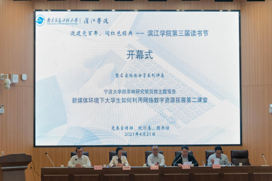 4月21日下午,以“迎建党百年,阅红色经典”为主题的南京信息工程大学滨江学院第三届读书节在图书馆报告厅开幕。我院200多名师生代表参加了开幕式,院纪委书记李步浩,党委宣传部部长程艳丽,学工处副处长、团委书记李沛武,图书馆馆长安杰出席活动。开幕式由李沛武副处长主持。
