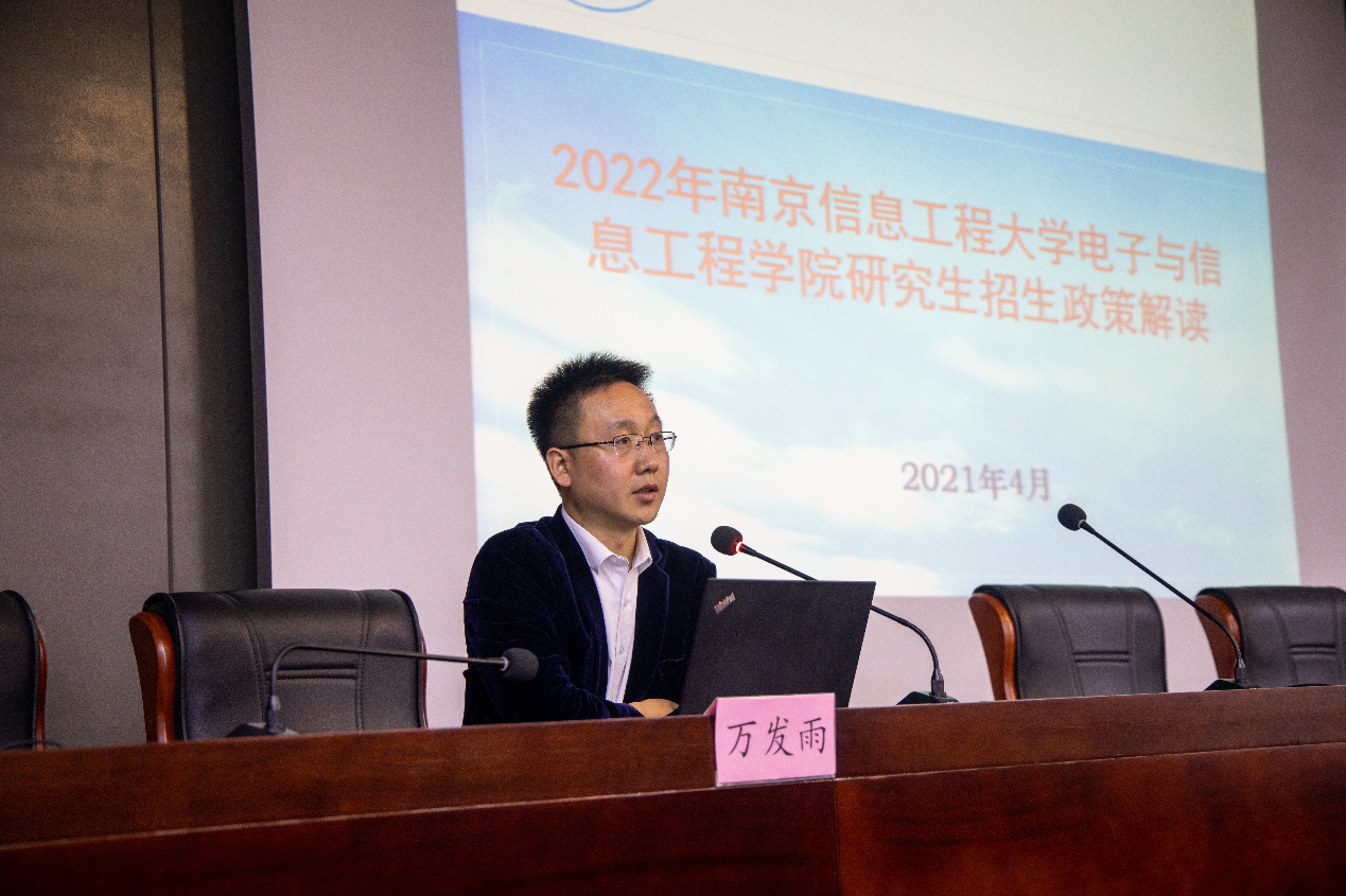 为进一步促进电子信息工程学院学生对硕士研究生招生政策的理解,指导学生更好的选择报考院校及专业,提高备考效率。4月26日下午,电子信息工程学院特邀南京信息工程大学电子与信息工程学院副院长万发雨于大礼堂103报告厅作2022南京信息工程大学电子与信息工程学院硕士研究生招生政策解读专题报告。活动由电子信息工程学院院长郭业才院长主持,全体辅导员及考研学子认真听取了报告。