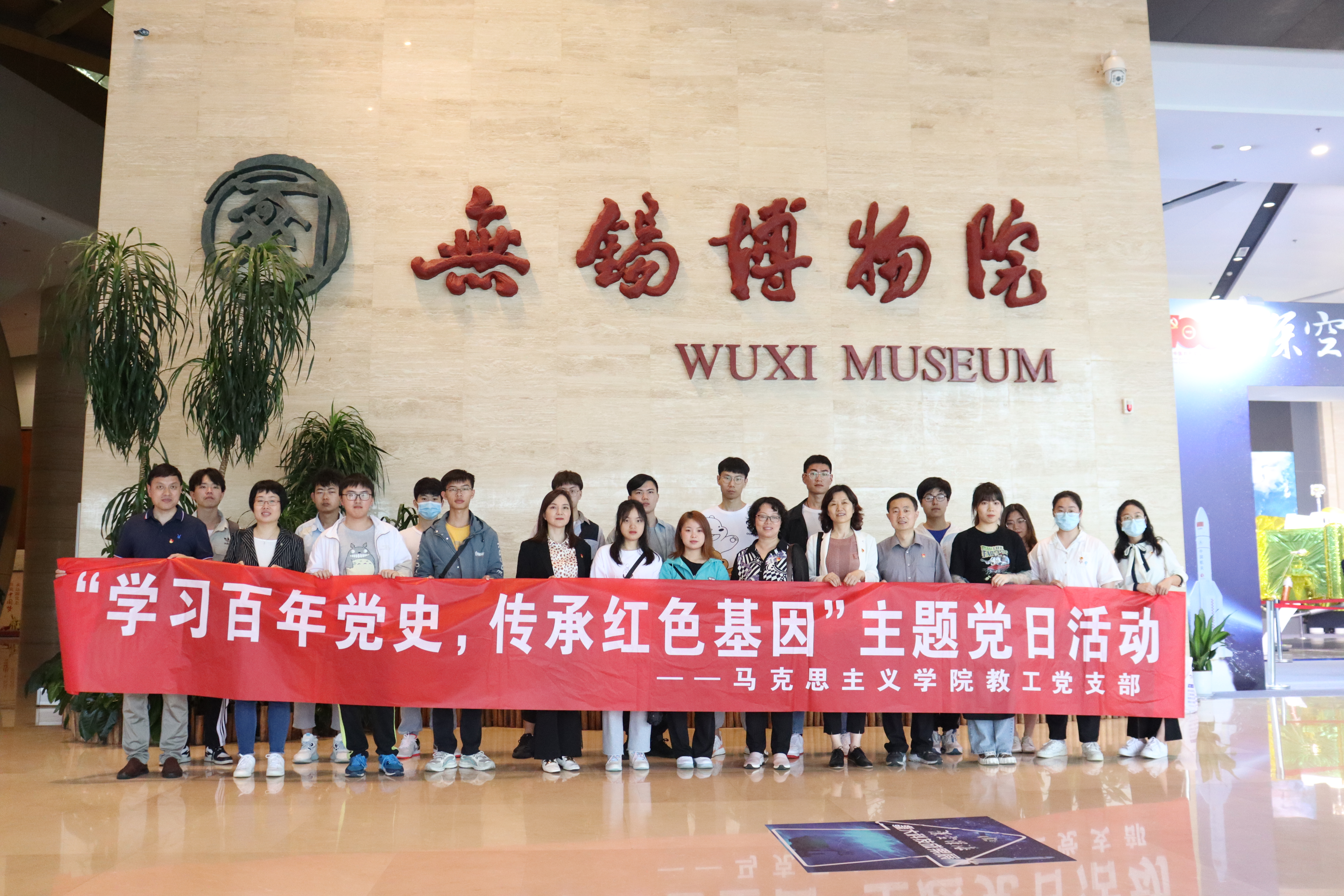“历史是最好的教科书”,今年是中国共产党百年华诞,也是“十四五”规划的开局之年。在两个一百年奋斗目标历史交汇的关键节点,为积极响应党中央在全党开展党史学习教育的重大决策,贯彻习近平新时代中国特色社会主义思想,落实学校党委关于开展党史学习教育的具体要求,5月12日下午,马克思主义学院教工党支部带领思政课老师和学生代表赴无锡革命陈列馆,开展了“学习百年党史、传承红色基因”主题党日活动,思政课老师现场讲述党史故事,将思政融入党建,给大家带来了一场别开生面的“行走的思政课”。