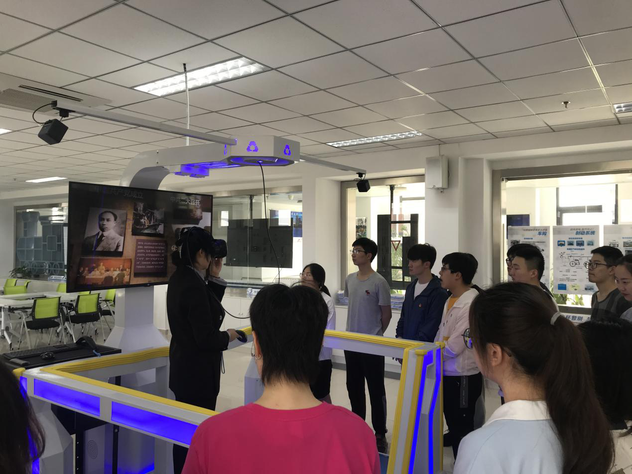 从展厅开始,18信管(交通)解婉婷同学讲解了尚善楼一楼的邮票展示区。橱窗内展示了从1972年到2006年之间不同国家、地区推出的各类纪念邮票。沿着文化长廊,18级通信工程(轨道交通信号方向)张致远同学讲解了尚善楼一楼的和谐号和复兴号版块。18物流(运营)王跃凡同学为大家介绍了世界轨道交通发展史,并重点介绍了“周恩来号”和“毛泽东号”。18自动化(轨道)吴思瑶同学在中国地铁红色发展历史版块中为大家讲解了青藏铁路。青藏铁路推动西藏进入铁路时代,拉动了青藏带的经济发展,被人们称为发展路、团结路、幸福路。18物流(运营)陈洁同学利用轨道交通学院VR实验室带领大家前往湖南党史陈列馆观看了中国共产党的红色历史。同学们在VR的环境下,回首中国共产党的百年过往,进一步加深了“学党史,强信念,跟党走”的意识。