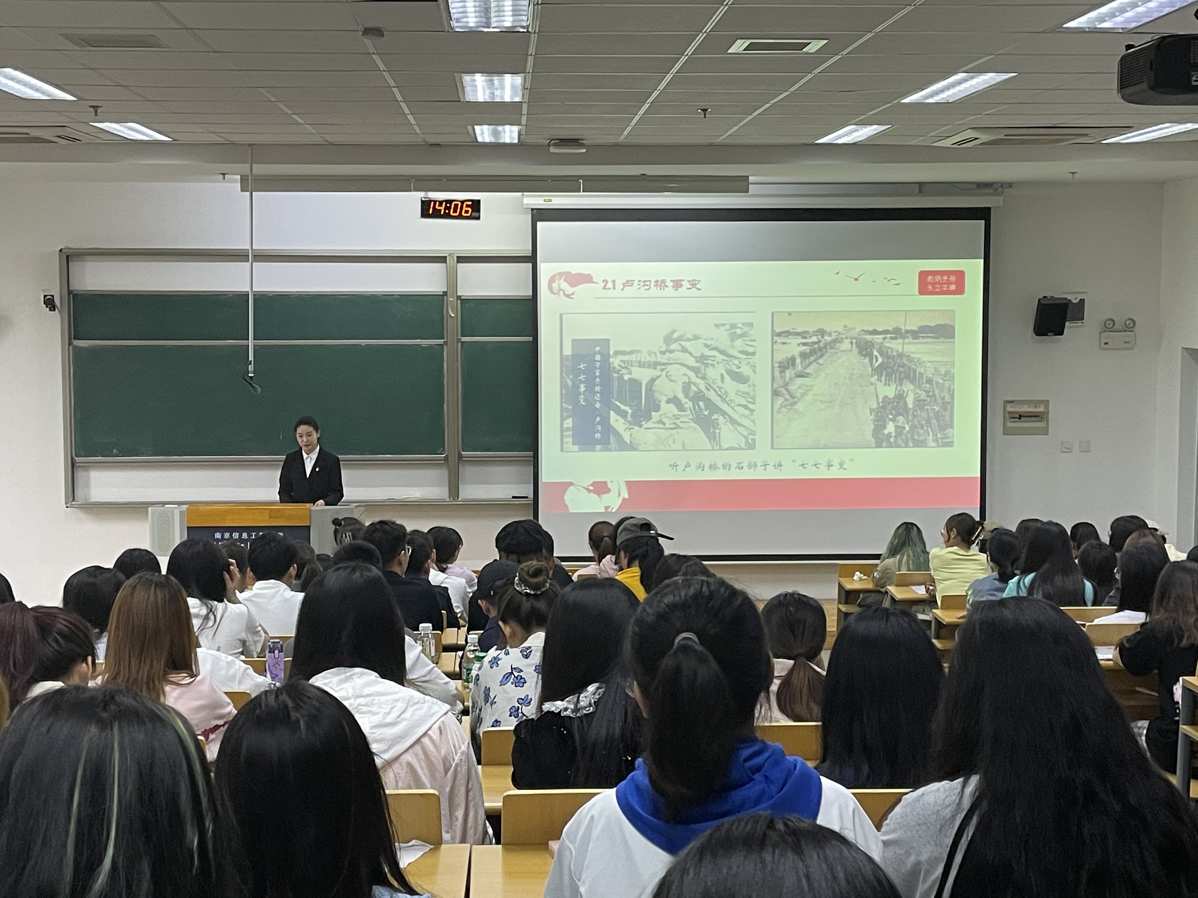 继“党员讲党史”第一讲成功举行后,商学院的同学们再次相聚一堂,与青年党员一起重温党的百年历史和辉煌。第二讲由青年党员朱娟娟、浦天庆同志担任讲解,主要讲述了抗日战争中的防御阶段、相持阶段和反攻阶段,以重要时间节点和事件为主题线索,将一幕幕伟大的革命场景重现于我们眼前。