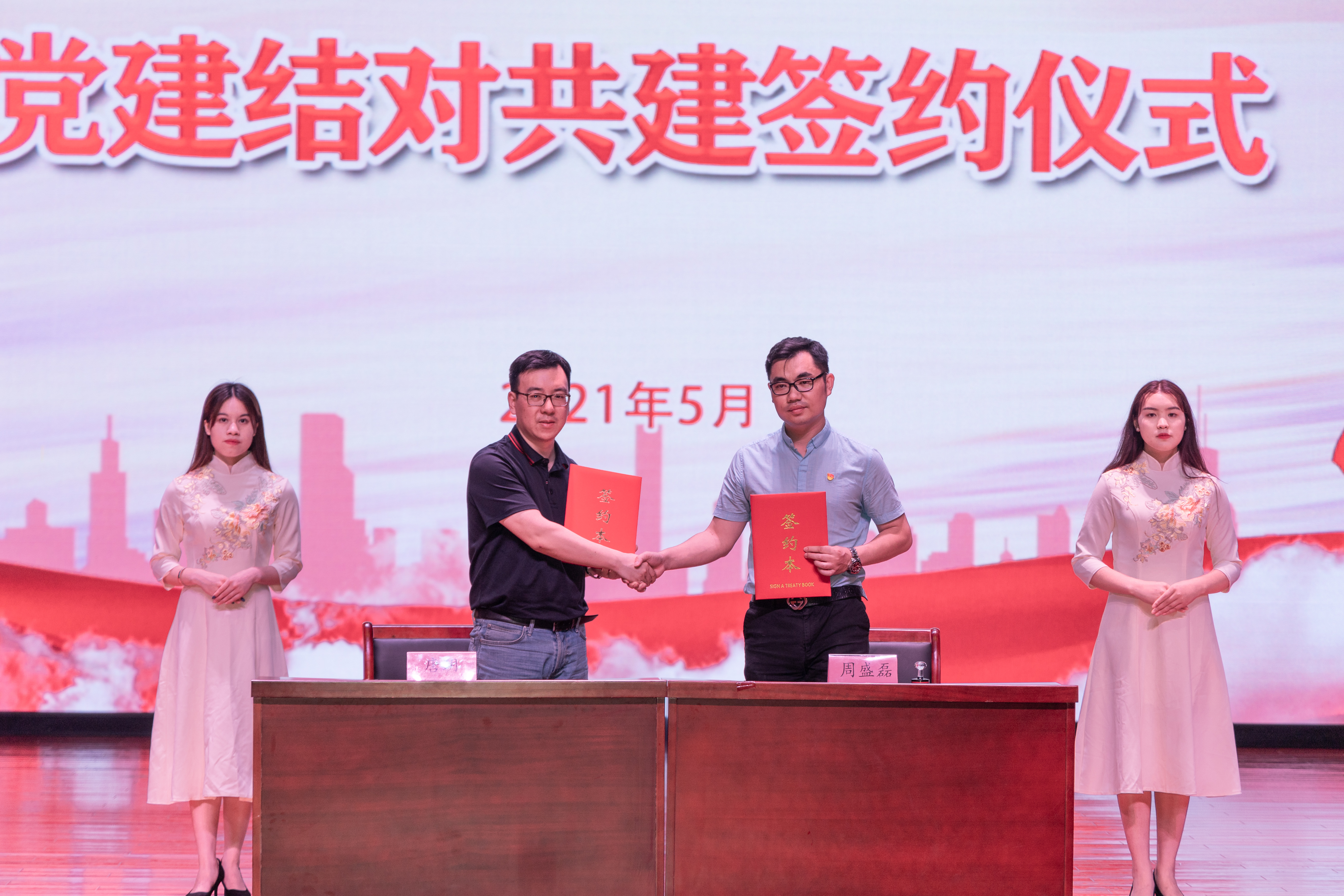 整场汇演,物联网工程学院的学子们通过手语操、家书朗诵、红色故事演绎、红歌大合唱、初心故事讲述等多种表演形式,进行了一次红色精神的洗礼和家国情感的升华。汇演结束后,为更好地发挥高校、社区、社会组织等各类党组织的优势互补,构建“资源共享、互相促进、共同提高”的党建工作新格局,物联网工程学院党总支分别与锡山安镇街道九里社区党支部、新吴区社会工作协会党支部举行党建结对共建签约仪式。