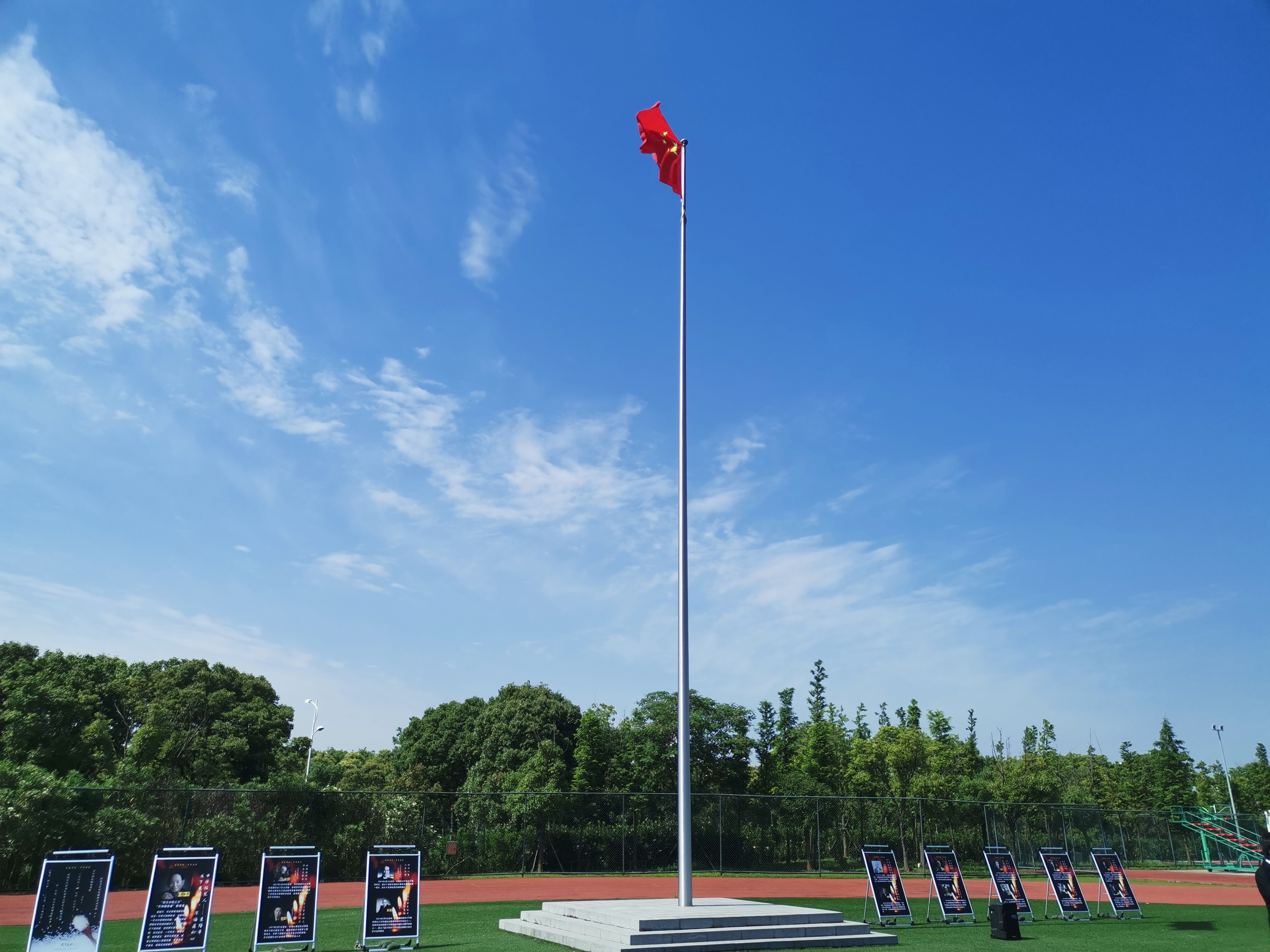 上午九点整,活动正式开始,全体庄严肃立,举行升国旗仪式。国旗班队员护送五星红旗走上升旗台,在雄壮的国歌中,五星红旗冉冉升起,全体师生行注目礼,表达对祖国、对国之脊梁最崇高的敬意!
