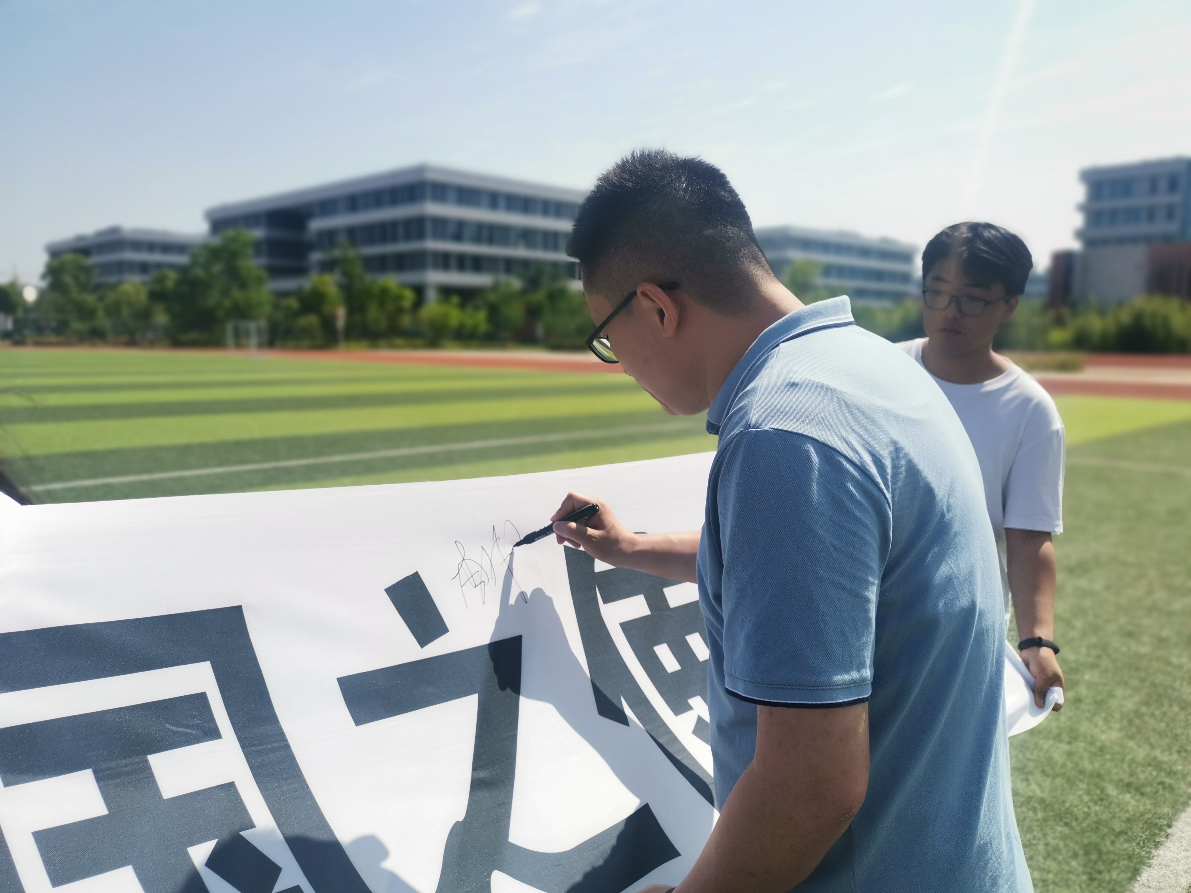 活动最后,师生们在横幅上郑重签上自己的名字。国之脊梁,吾辈楷模,国士非凡成就的背后是永远在燃烧的创新之火,是一以贯之的初心之力,是脚踏实地的奋斗之路。他们不仅馈赠给世界厚重的科学遗产,更给我们留下了宝贵的精神财富,激励后辈继续开拓进取,奋力向前。