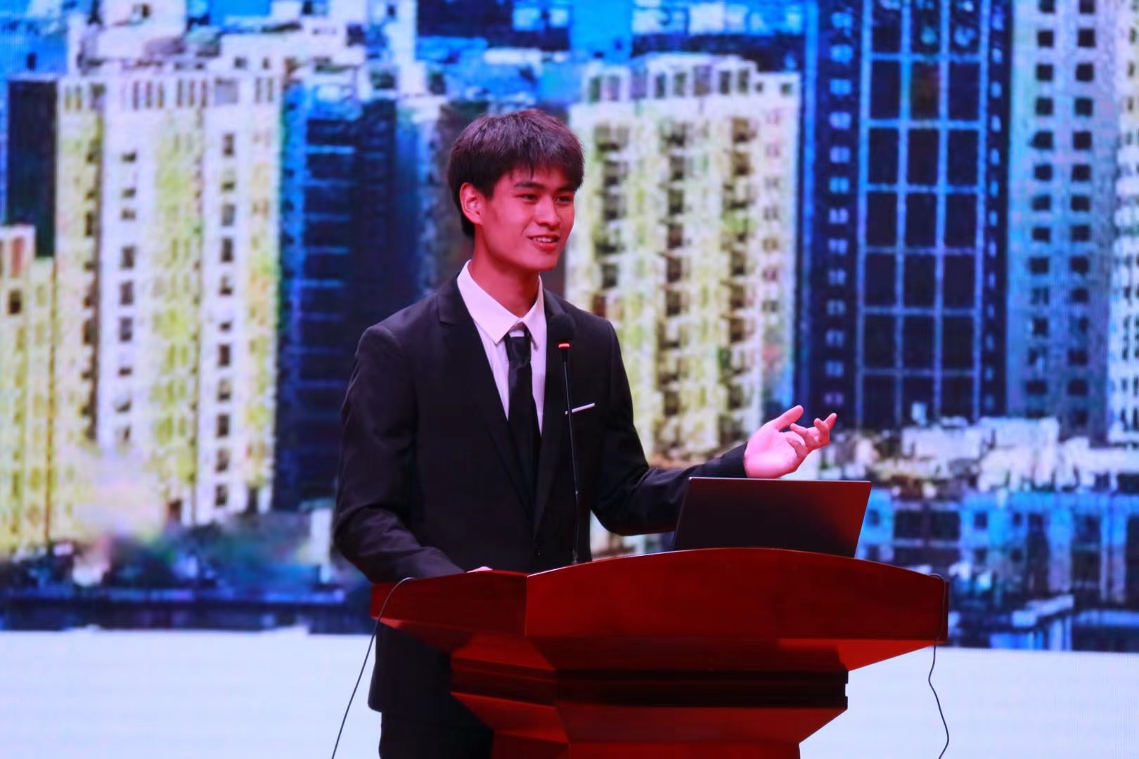 之后,在接下来的两个小时里,参加决赛的10位选手依次在舞台上挥洒才情,他们用流利而富有情感的演讲表达着自己对中国共产党光辉历史的理解与感动。他们慷慨激昂的演讲更是博得了台下评委及观众的阵阵掌声。在比赛的间隙,人文法政学院的同学们也呈现了精彩的表演。张淞、代志蓉、李成功、赵怡瑶、季裕轩等同学为大家分别演唱了歌曲《飞云之下》及《我的祖国》。