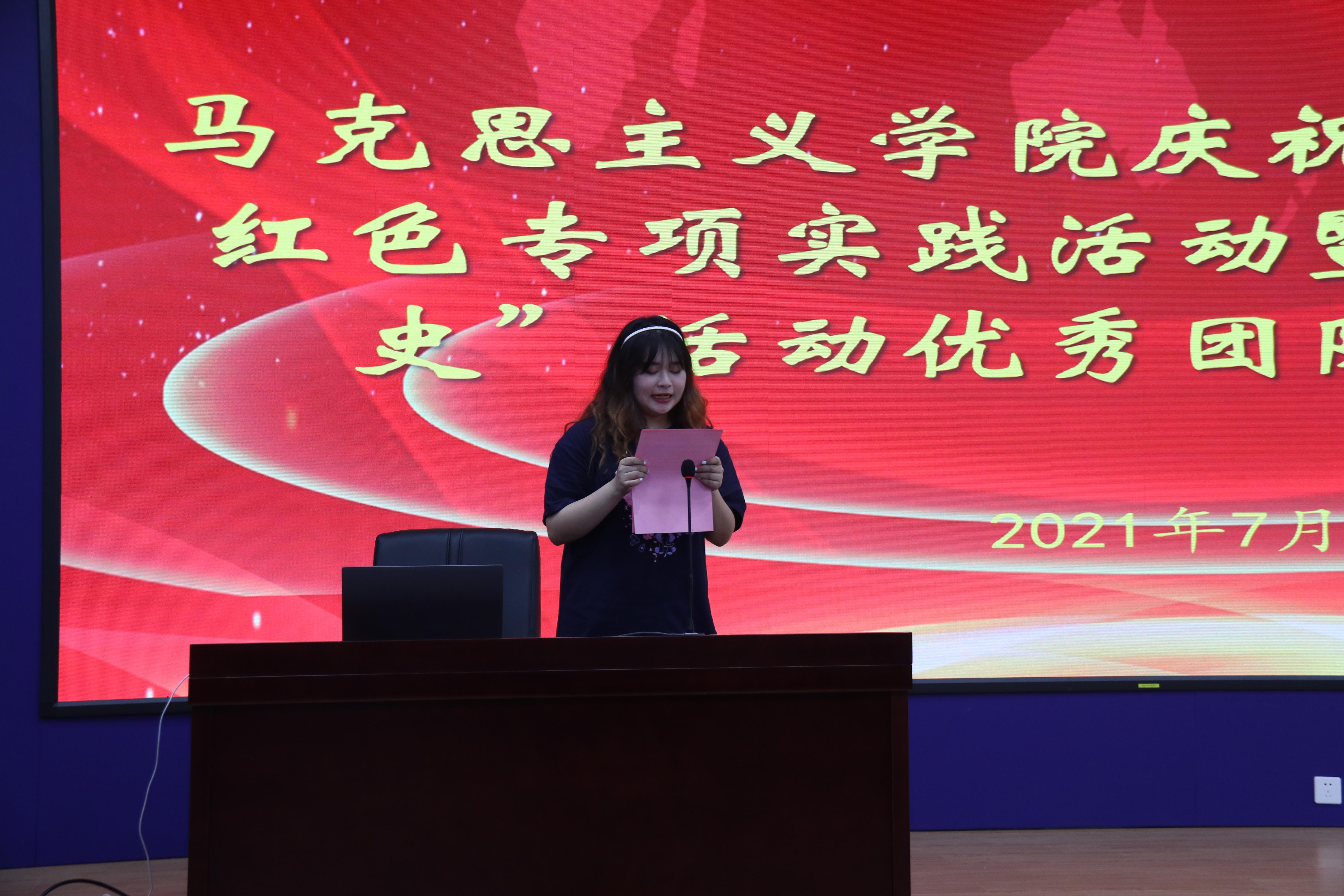 为引领广大青年学生深入学习贯彻习近平新时代中国特色社会主义思想,通过社会实践坚定理想信念,通过讲好党史故事激发学生使命担当意识,表彰先进,树立标杆,7月6日下午,马克思主义学院在科创楼二楼报告厅举办了庆祝建党100周年红色专项实践活动暨“我来讲党史”活动优秀团队颁奖仪式。活动由马克思主义学院瞿华老师主持,马克思主义学院全体教师和来自各二级学院的200多名学生参加活动。
