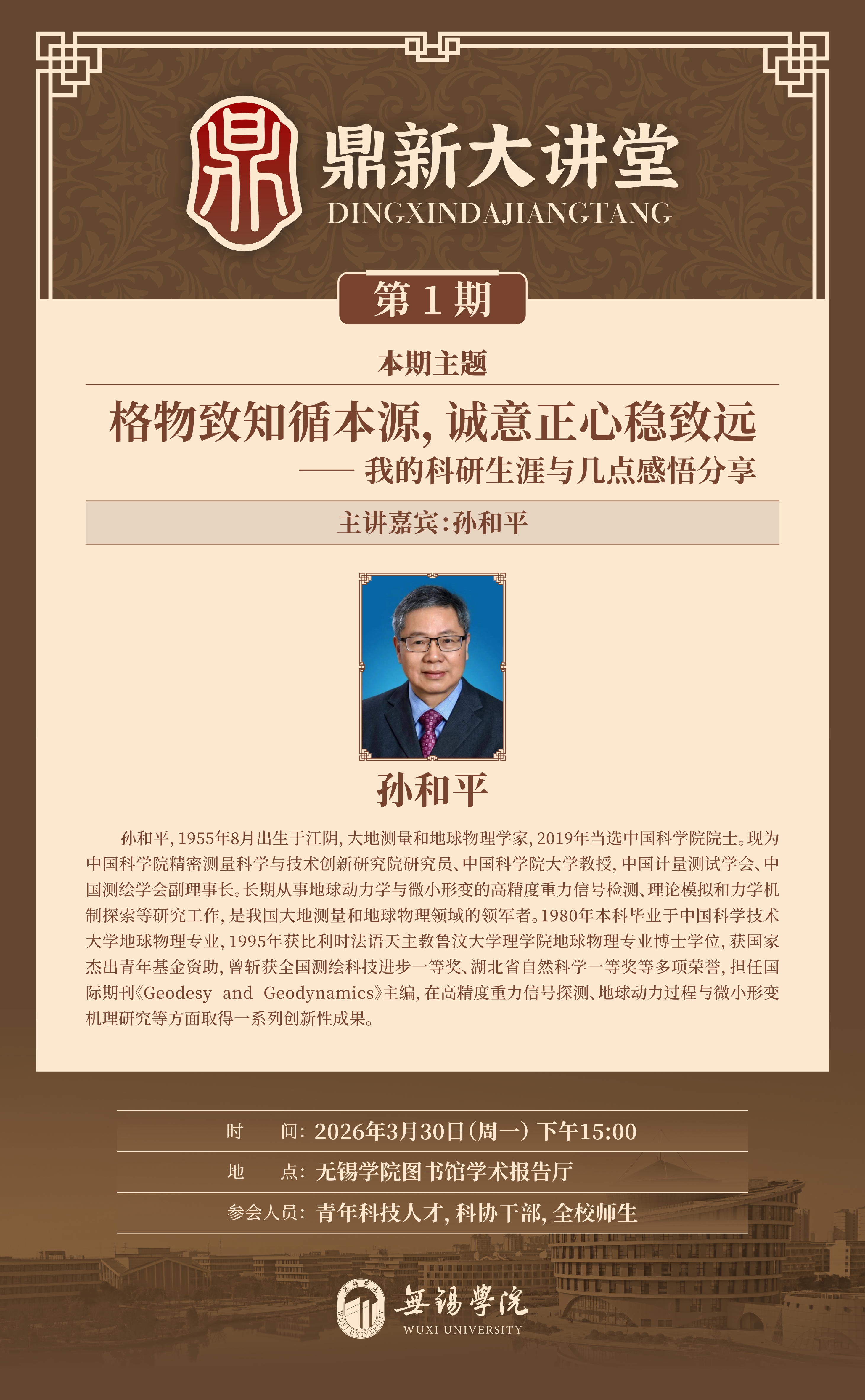 报告地点:无锡学院图书馆学术报告厅