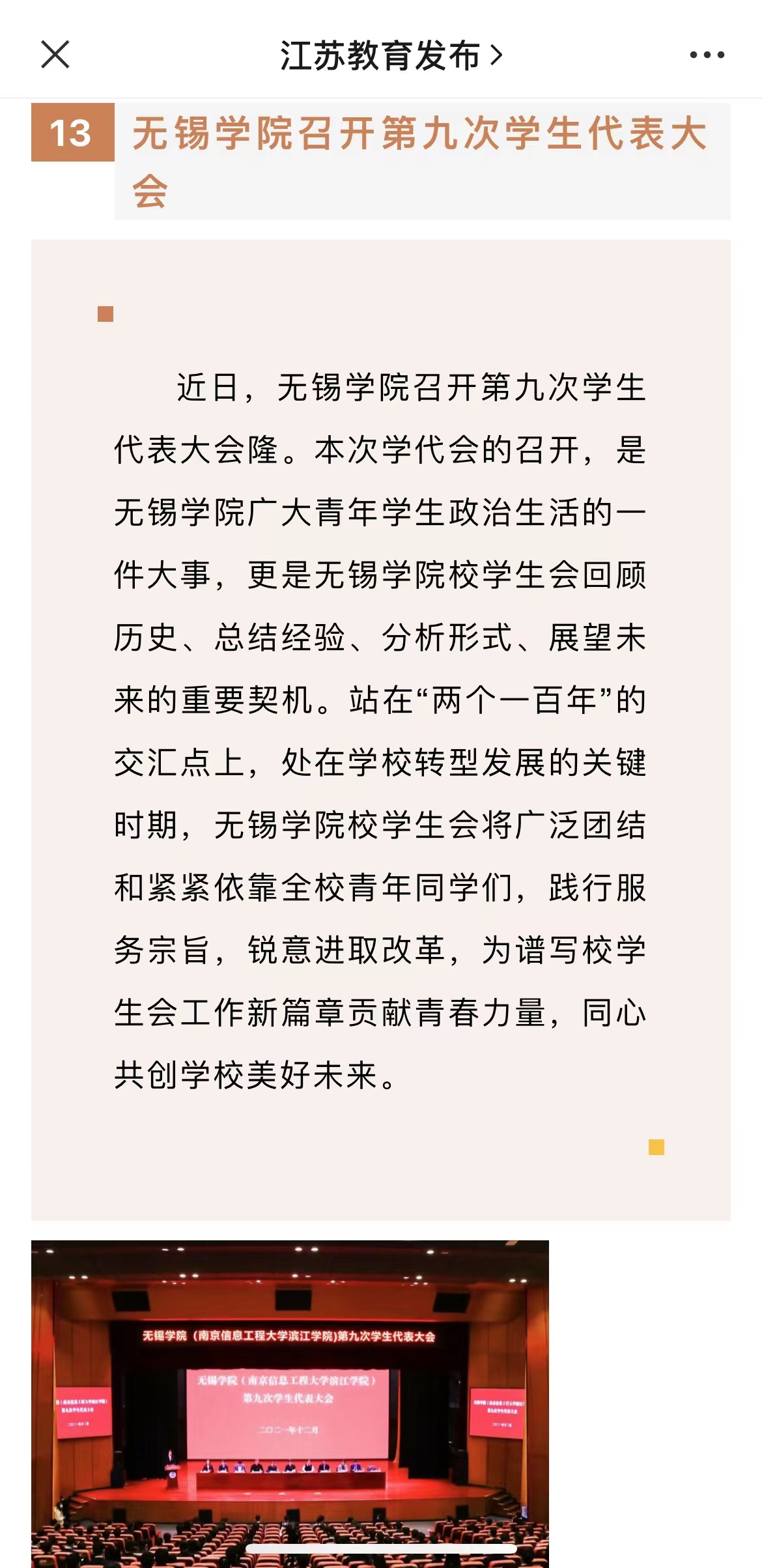 【江苏教育发布官微】无锡学院召开第九次学生代表大会