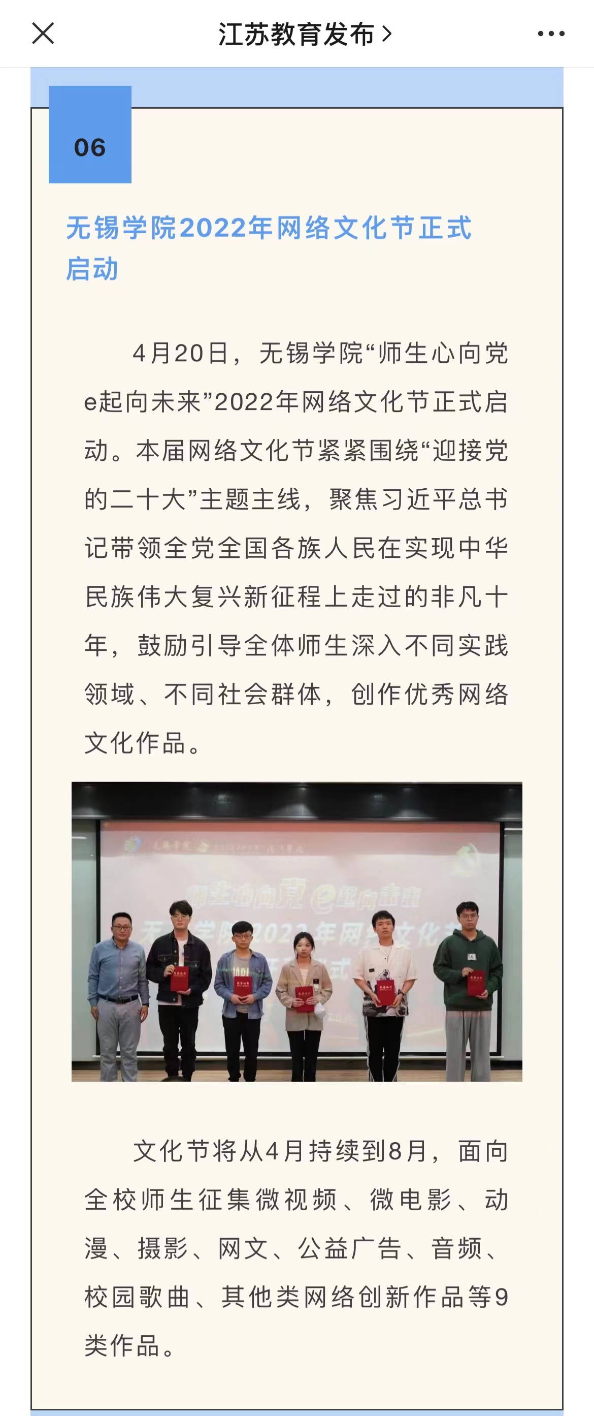 下一条:【江苏教育发布官微】无锡学院举办“同心抗疫,温暖前行”校园主题摄影大赛