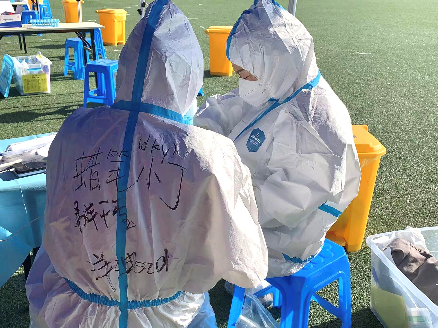 在那之后,一切越来越顺利,不到3小时就已经完成400多人的核酸检测。当我觉得一切都要越来越好时,闷热、饥饿与身体传来的阵阵酸痛,试图摧毁我的意志力。