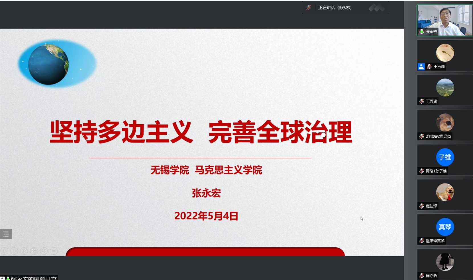“形势与政策”课是理论武装时效性、释疑解惑针对性、教育引导综合性都很强的一门高校思想政治理论课。4月26日至5月4日,无锡学院党委书记杨建新教授、校长张永宏教授和其他校领导深入思政课堂一线,以线上授课的方式,面向不同学院、不同专业的学生进行专题授课,为同学们带来了一堂堂理论深刻、视野开阔、内容丰富,极具吸引力和感染力的“思政大课”。