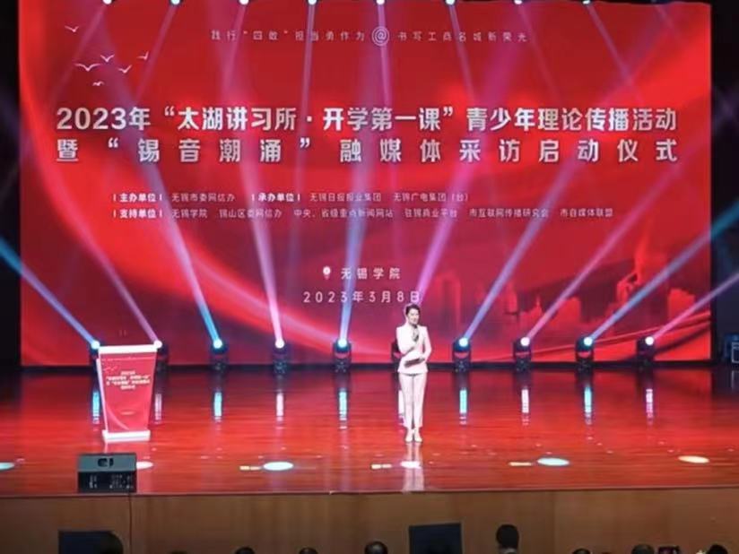 3月8日下午,由无锡市委网信办主办的2023年“太湖讲习所·开学第一课”暨“锡音潮涌”融媒体采访启动仪式在无锡学院大礼堂举行。活动现场,无锡市互联网行业“e企学习”讲师团名单发布,无锡学院“太湖讲习所—青年学习社”、无锡学院“太湖讲习所—经典诵读网络文化工作室”揭牌。