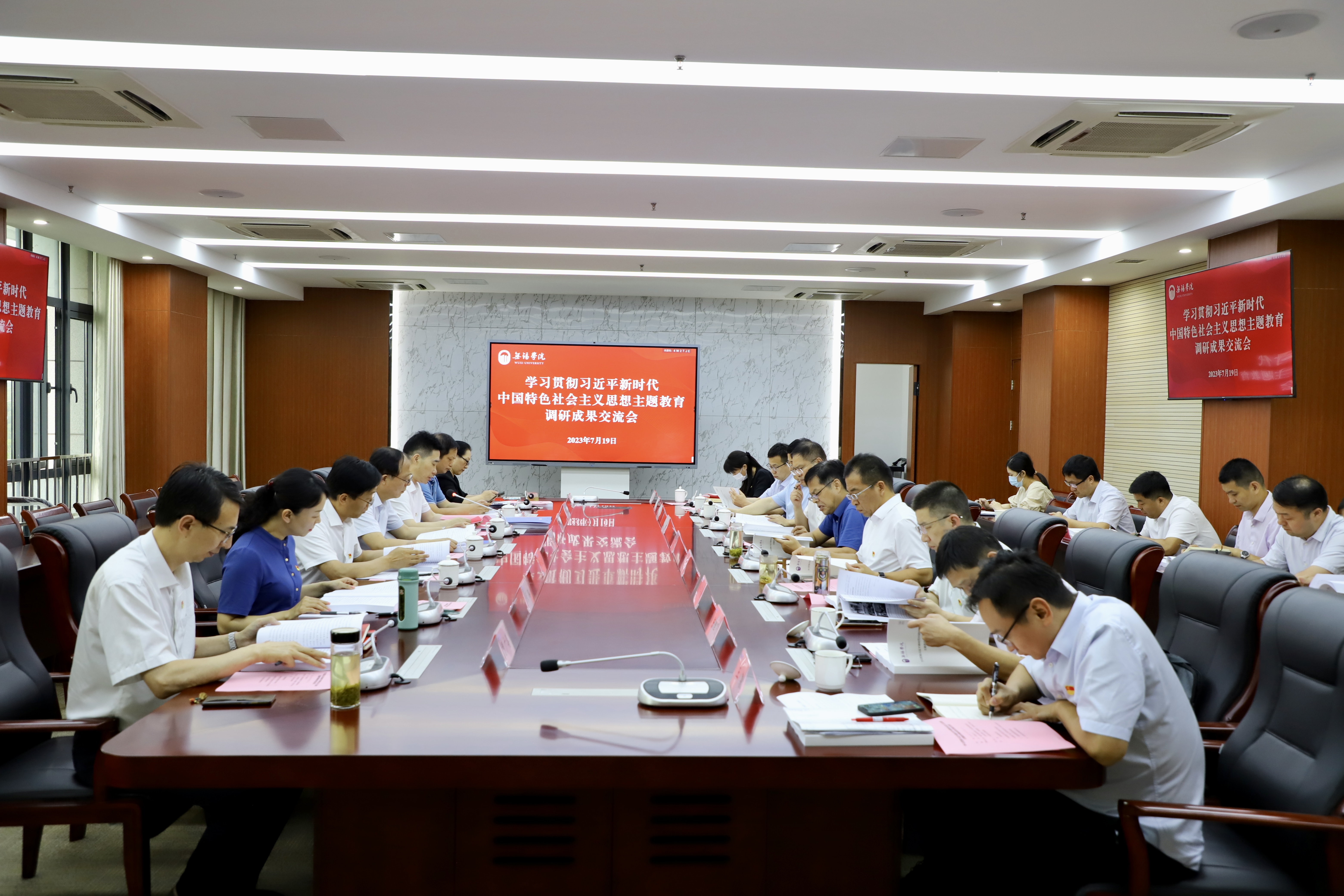交汇点讯 7月19日下午,无锡学院召开学习贯彻习近平新时代中国特色社会主义思想主题教育调研成果交流会。校领导班子成员代表、职能部门和二级学院负责人代表作调研成果交流发言。校党委书记杨建新主持会议并讲话。省委主题教育第二十一巡回指导组组长,南京审计大学原党委副书记、校长刘旺洪到会指导。