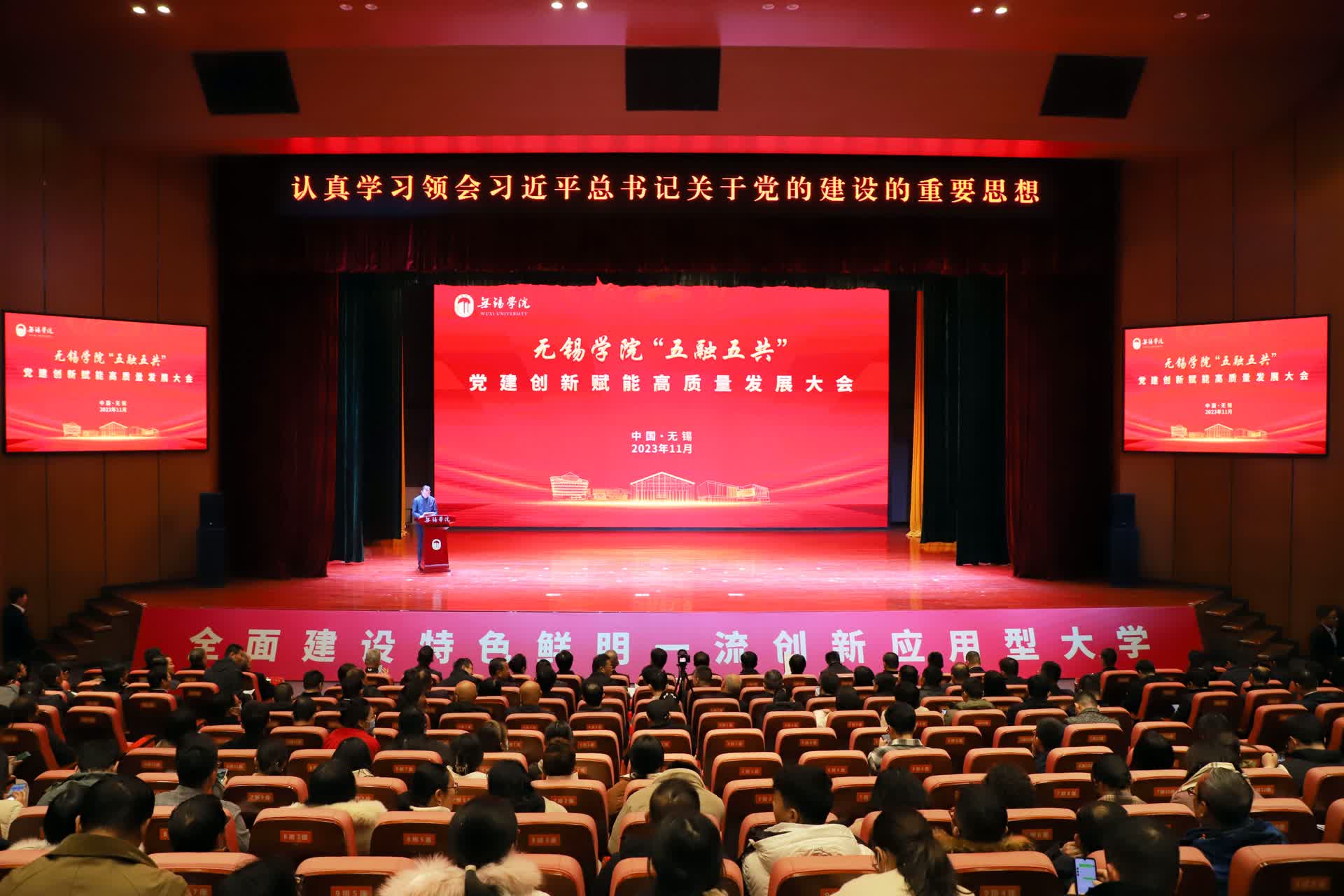 交汇点讯 11月30日下午,无锡学院在学校大礼堂举办“五融五共”党建创新赋能高质量发展大会,将党建链嵌入政产学研合作人才链和产业链,提升党建业务融合、校地校企共建水平。