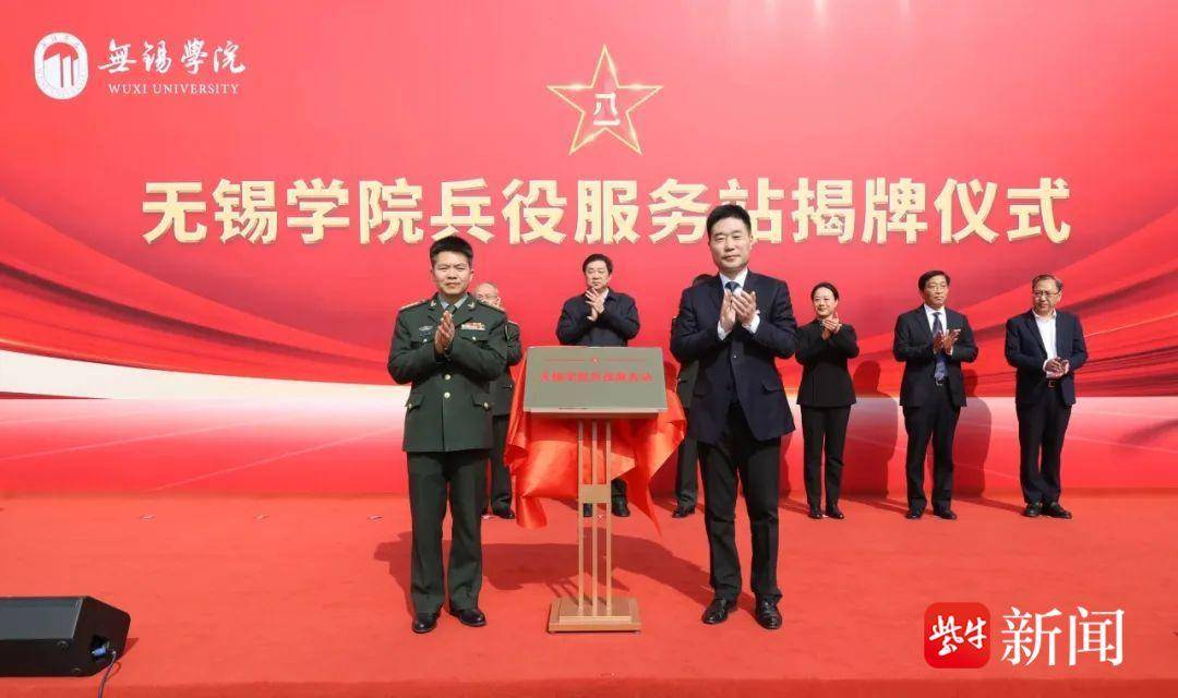 3月15日,无锡学院“兵役服务站”揭牌仪式在该校大学生活动中心举行。无锡市委副书记、市长、市征兵领导小组组长赵建军,无锡市委常委、无锡军分区司令员王作才,无锡军分区政委常新生,副市长卢敏,无锡军分区副司令员、市征兵办主任来全亮,无锡学院党委书记杨建新、校长张永宏,无锡市政府秘书长陈寿彬,无锡学院党委常委、副校长左同宇出席揭牌仪式。