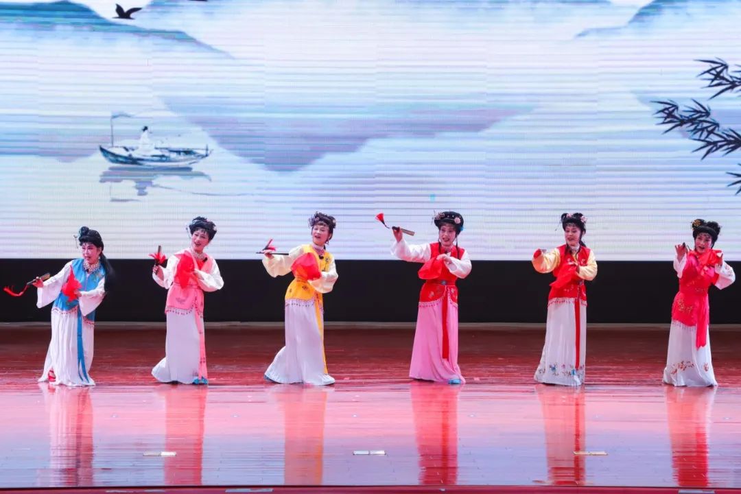 伴随着全场热烈的掌声,演出活动在舞蹈《九州同》中拉开序幕,学生们以欢快的旋律、优美的舞姿和丰富的肢体语言,展现了九州大地的繁荣昌盛和多元文化魅力。羊尖镇离退休干部党支部献上了锡剧《沙家浜》选段《定能战胜顽敌渡难关》,重温那段激情燃烧的岁月。