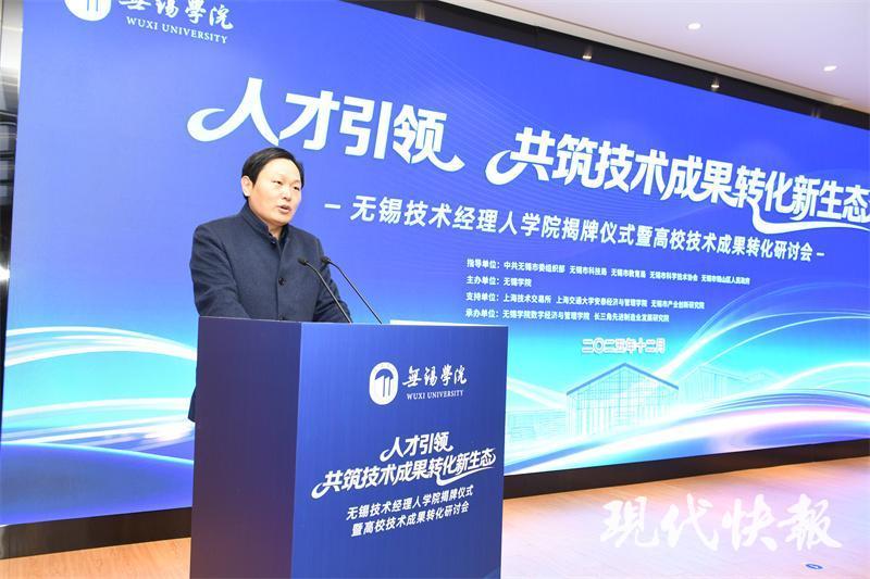 无锡学院党委书记张永宏在致辞中系统介绍了学校在产教融合、人才融通、科教融汇等方面取得的成效。他指出,成立无锡技术经理人学院,是学校贯彻落实党中央决策部署,推进技术创新与成果转化工作的重要举措,是争当“双高协同”工作示范表率、服务地方创新发展的具体行动,更是实现“新型应用型大学”建设目标的内在需求。