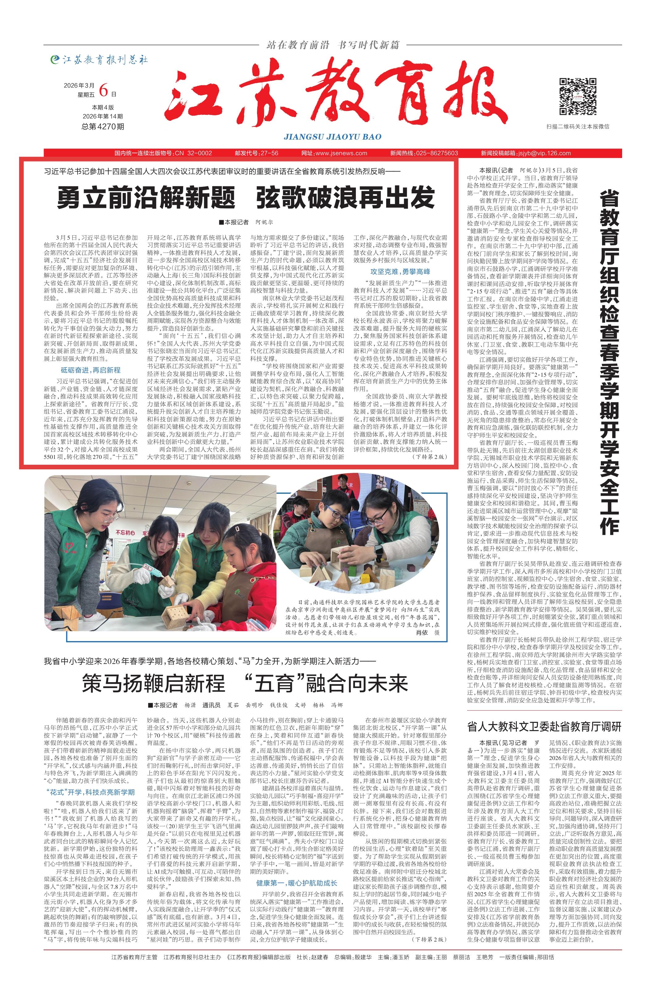 “发展新质生产力”“一体推进教育科技人才发展”……习近平总书记对江苏的殷切期盼,让我省教育系统干部师生倍感振奋。