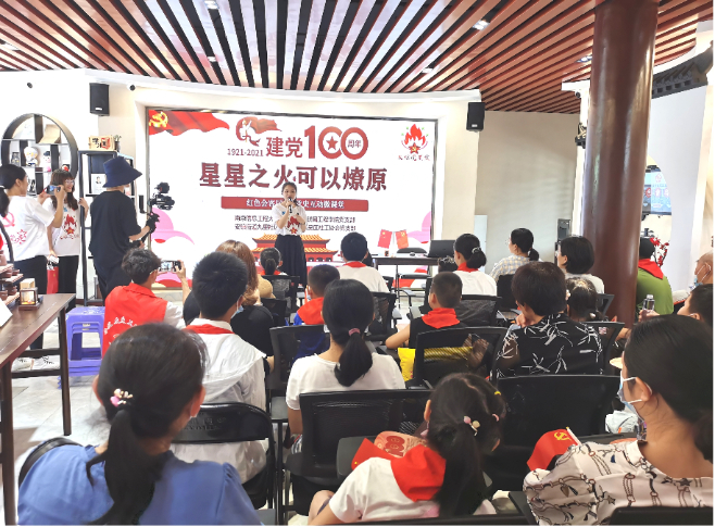 在党史学习教育过程中,无锡学院学子既当学生,又当老师,结合暑期社会实践,把党史教育面铺的更广,学习人群拓的更开。实践小分队成员通过现场招募15组亲子家庭,带领他们一起学、一起听,开展了一场又一场别开生面的“沉浸式”学党史活动。