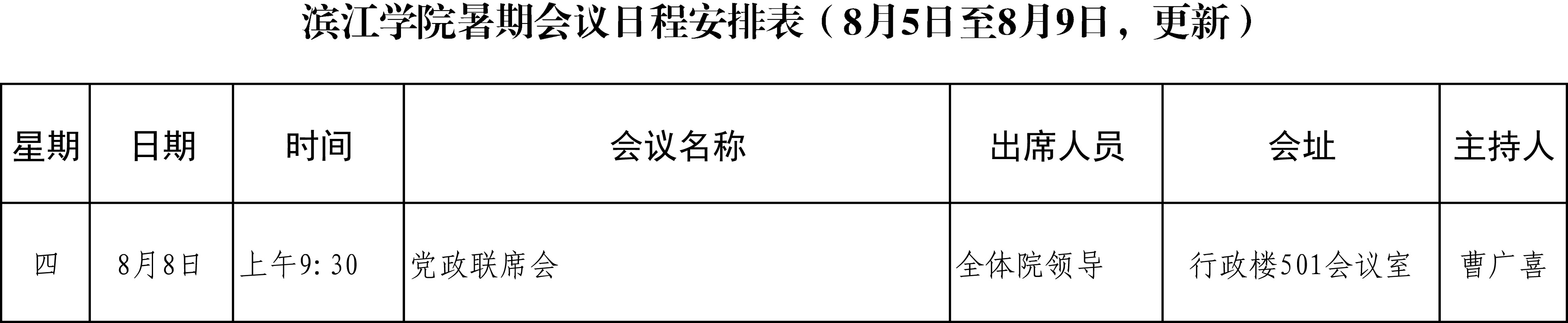 滨江学院暑期会议日程安排表(8月5日至8月9日,更新)