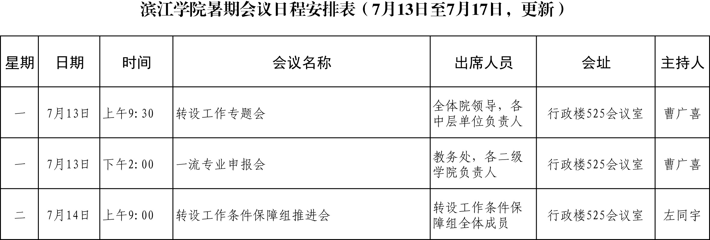 滨江学院暑期会议日程安排表(7月13日至7月17日,更新)