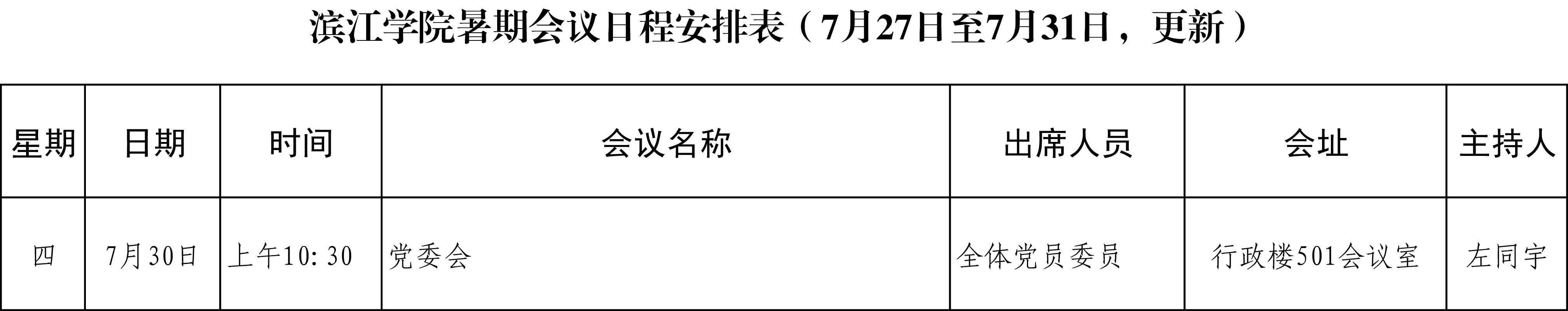 滨江学院暑期会议日程安排表(7月27日至7月31日,更新)