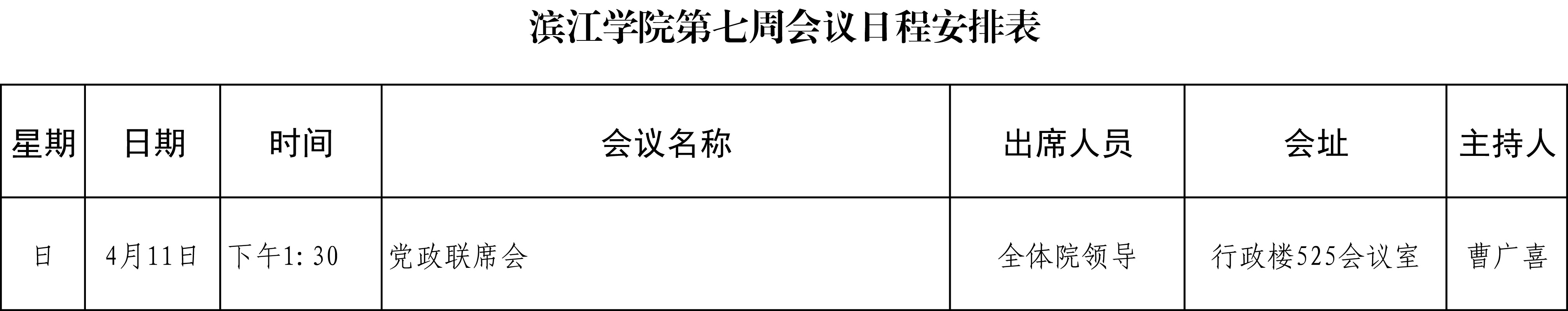 滨江学院第七周会议日程安排表