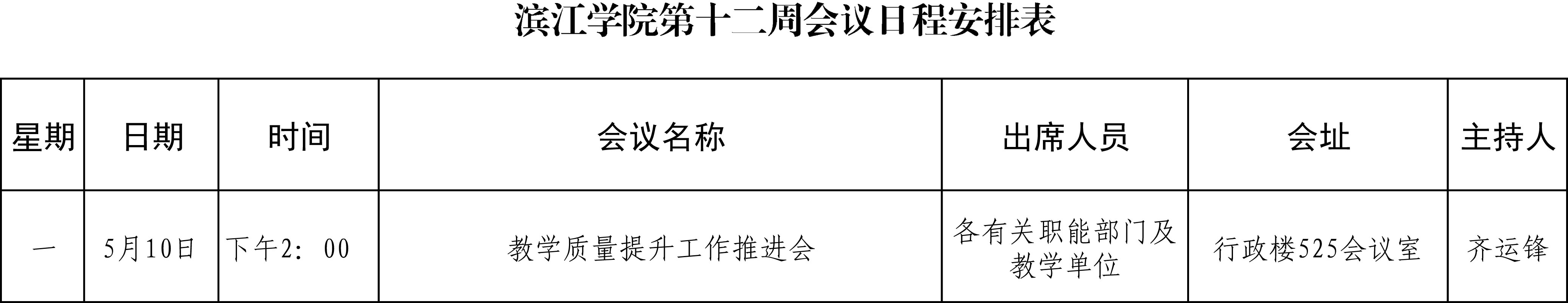 滨江学院第十二周会议日程安排表
